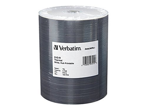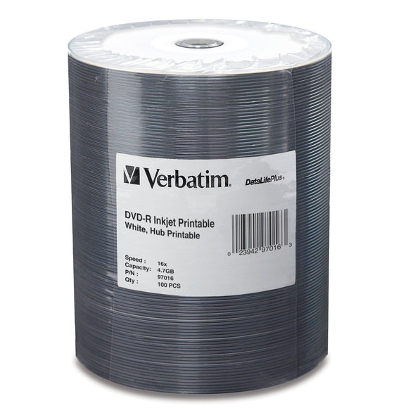 Verbatim 4.7GB up to 16x DataLifePlus White Thermal Hub Printable Recordable Disc DVD-R (100-Disc Spindle Tape Wrap) 97015