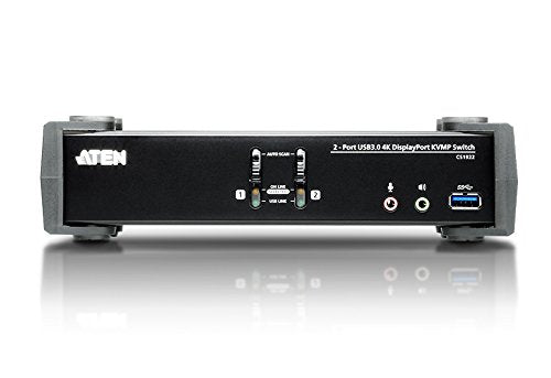 Details: The ATEN CS1922 2-Port USB 3. 0 4K DisplayPort KVMP™ Switch provides the latest innovations in desktop KVM switching technology for the increasing demand of higher video quality and transfer speeds on modern computers. The ATEN CS1922 offers an unprecedented performance of delivering 4K resolution, the next generation USB 3. 1 Gen 1 hub with SuperSpeed 5 Gbps data transfer rates and enhanced user-friendly operations. As a KVM switch, the CS1922 allows users to access two DisplayPort computers from a single USB keyboard, USB mouse and monitor console. Doing so with ease, the CS1922 provides three convenient switching methods - using front panel pushbuttons, mouse, or hotkeys for flexible access to any computer connected to the installation. The unique independent switching feature allows the KVM control to focus on one computer while the USB peripheral focus is on another computer. This eliminates the need to purchase a separate USB hub or stand-alone peripheral sharer - such as a print server, modem splitter, etc. With its rich feature set, the CS1922 is designed to surpass all requirements in graphic design, animation, and video-editing applications. Such as CAD/CAM (computer aided design/manufacturing). The CS1922 allows you to share the audio from each of the connected computers. HD audio transmitted by DisplayPort would offer you a different experience. More from the Manufacturer. Manufacturer: ATEN Technology Manufacturer Part Number: CS1922. Brand Name: ATEN. Product Model: CS1922. Product Name: 2-Port USB 3. 0 4K DisplayPort KVMP Switch. Packaged Quantity: 1. Product Type: KM Switchbox. [Technical Information] Number of Computers Supported: 2. Number of Local Users Supported: 1. [Video] Maximum Video Resolution: 4096 x 2160. [Interfaces/Ports] USB: Yes. DisplayPort: Yes. Number of USB Ports: 6. Number of DisplayPort's: 3. [Physical Characteristics] Haig