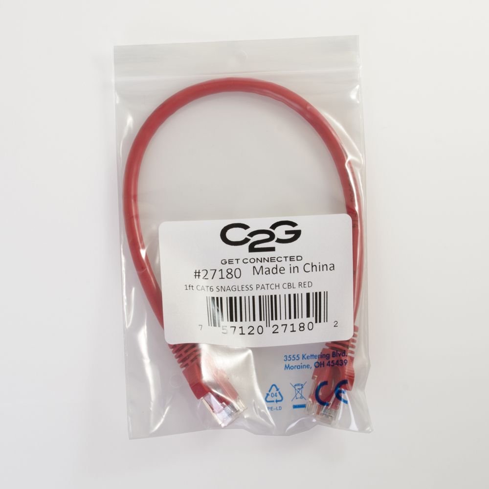 C2G 31345 Cat6 Cable - Snagless Unshielded Ethernet Network Patch Cable, Red (5 Feet, 1.52 Meters)