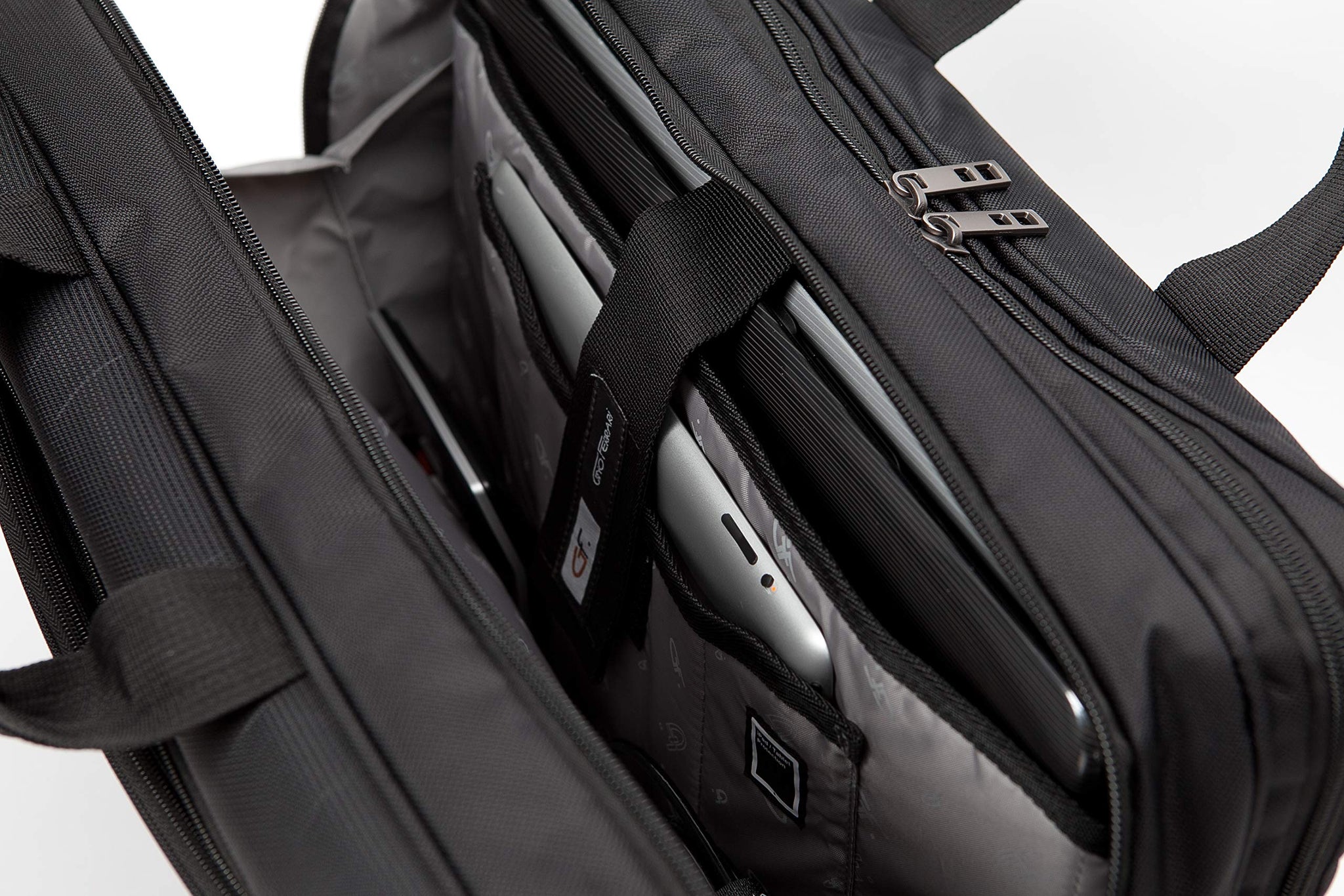 Large 17 inch Laptop Pilot Case - with Webbing Strap for Roller Bag Attachment by Gino Ferrari | Dual Padded Compartments for 17" Laptops & 14 Inch Tablets / Ipads (Metis GF1044)