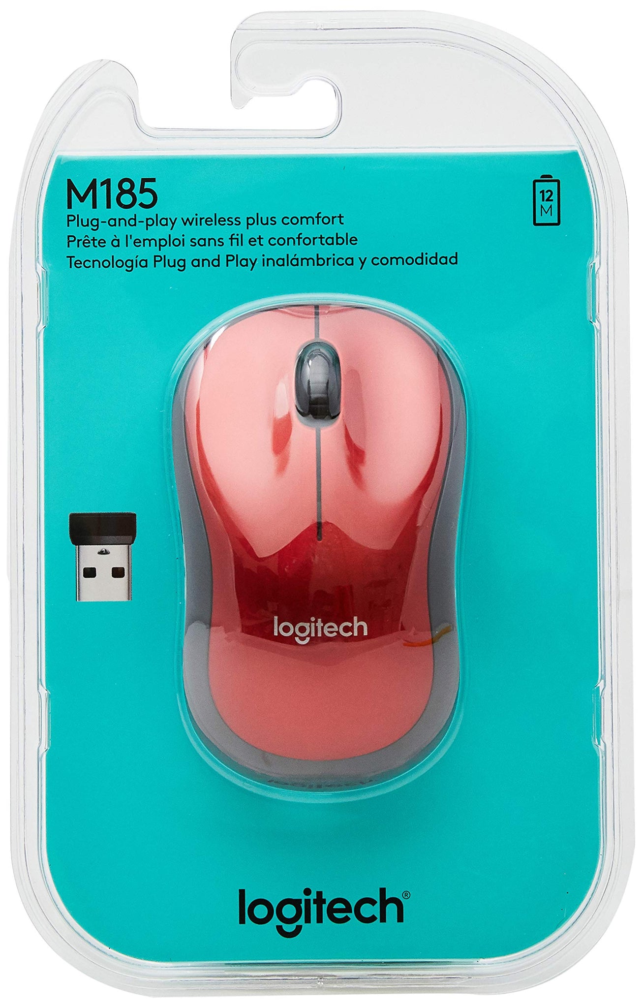 Logitech M185 Wireless Optical Mouse 2.4 GHz, Red (910-003635)