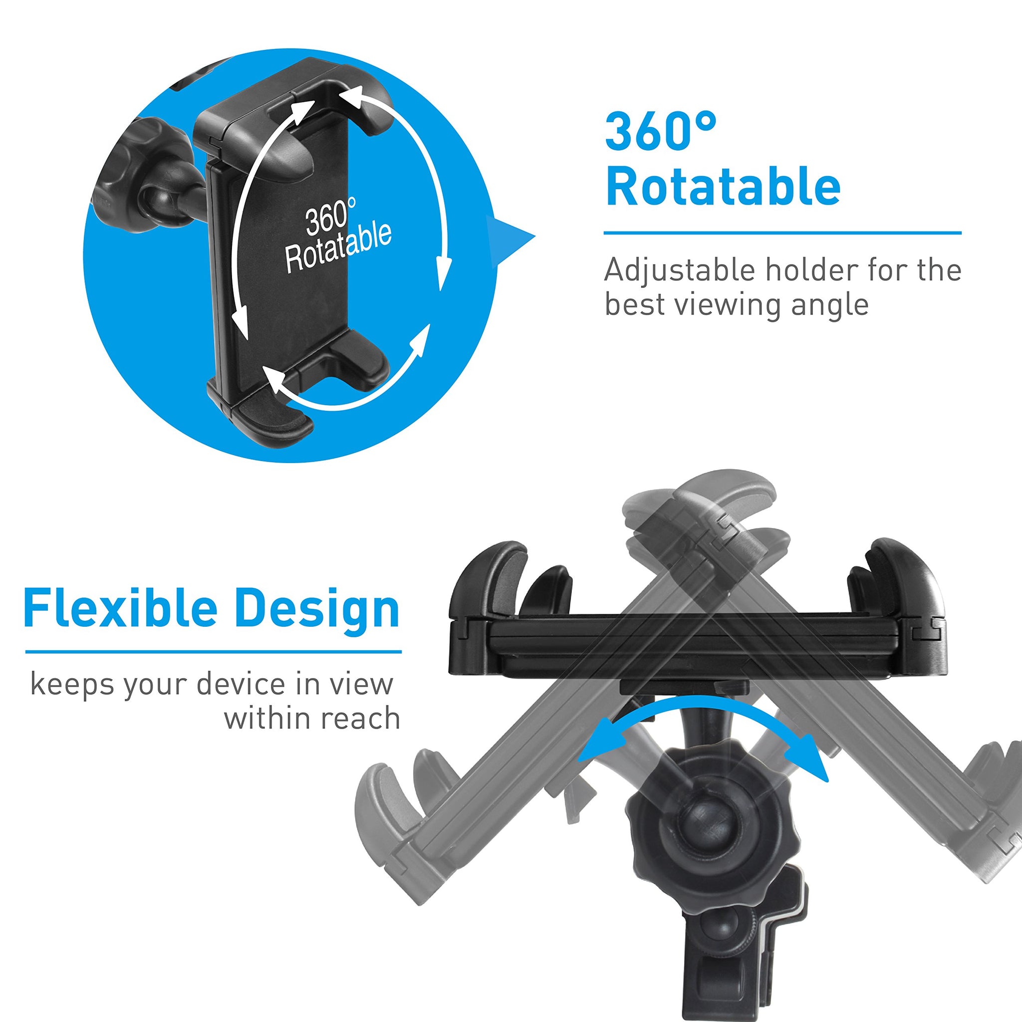• SECURE & STABLE: Designed to keep the tablet stable and from bouncing while driving with the strong aluminum shaft