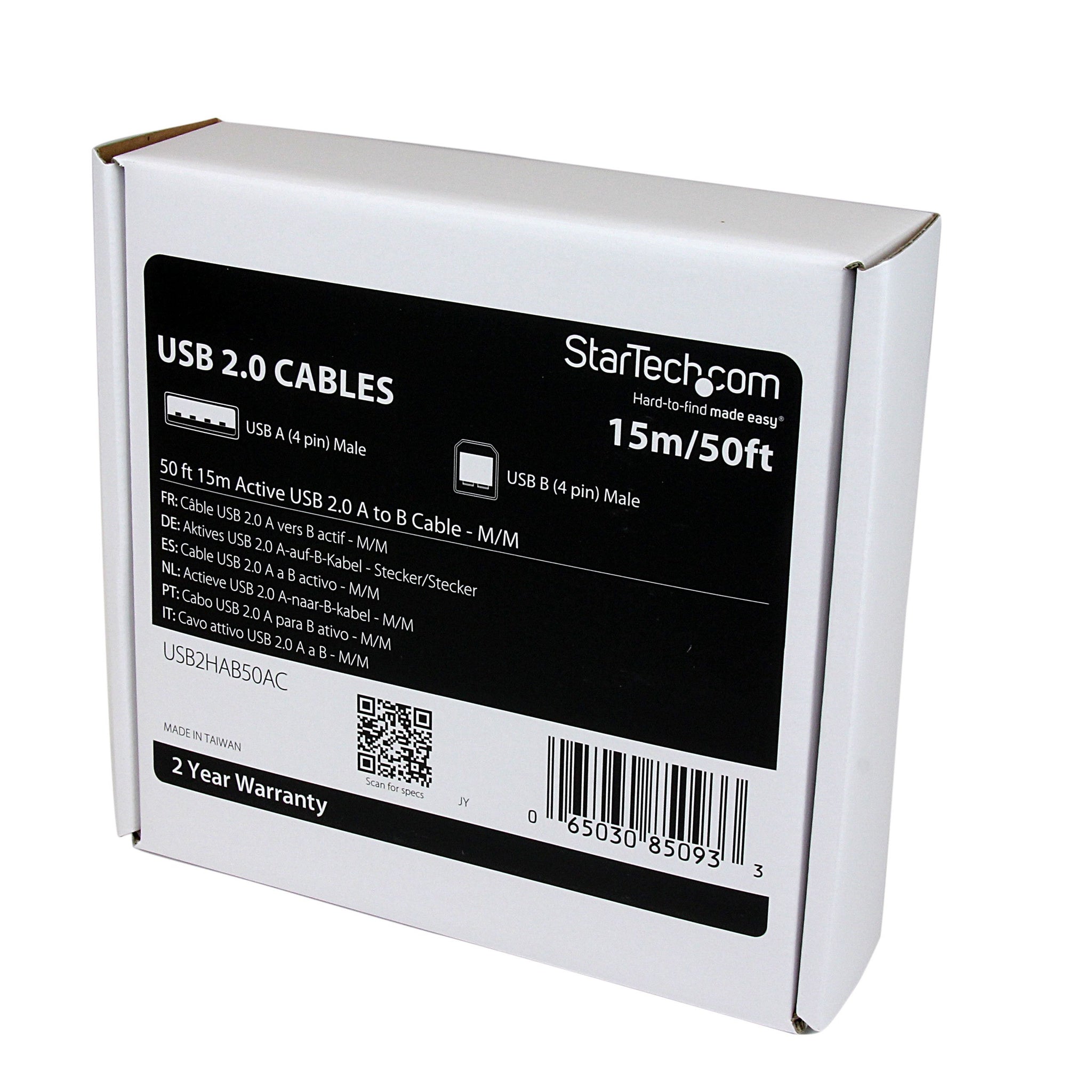 StarTech.com 15m / 50 ft Active USB 2.0 A to B Cable - Long 15 m USB Cable - 50 ft USB Printer Cable - 1x USB A (M), 1x USB B (M) - Black (USB2HAB50AC)