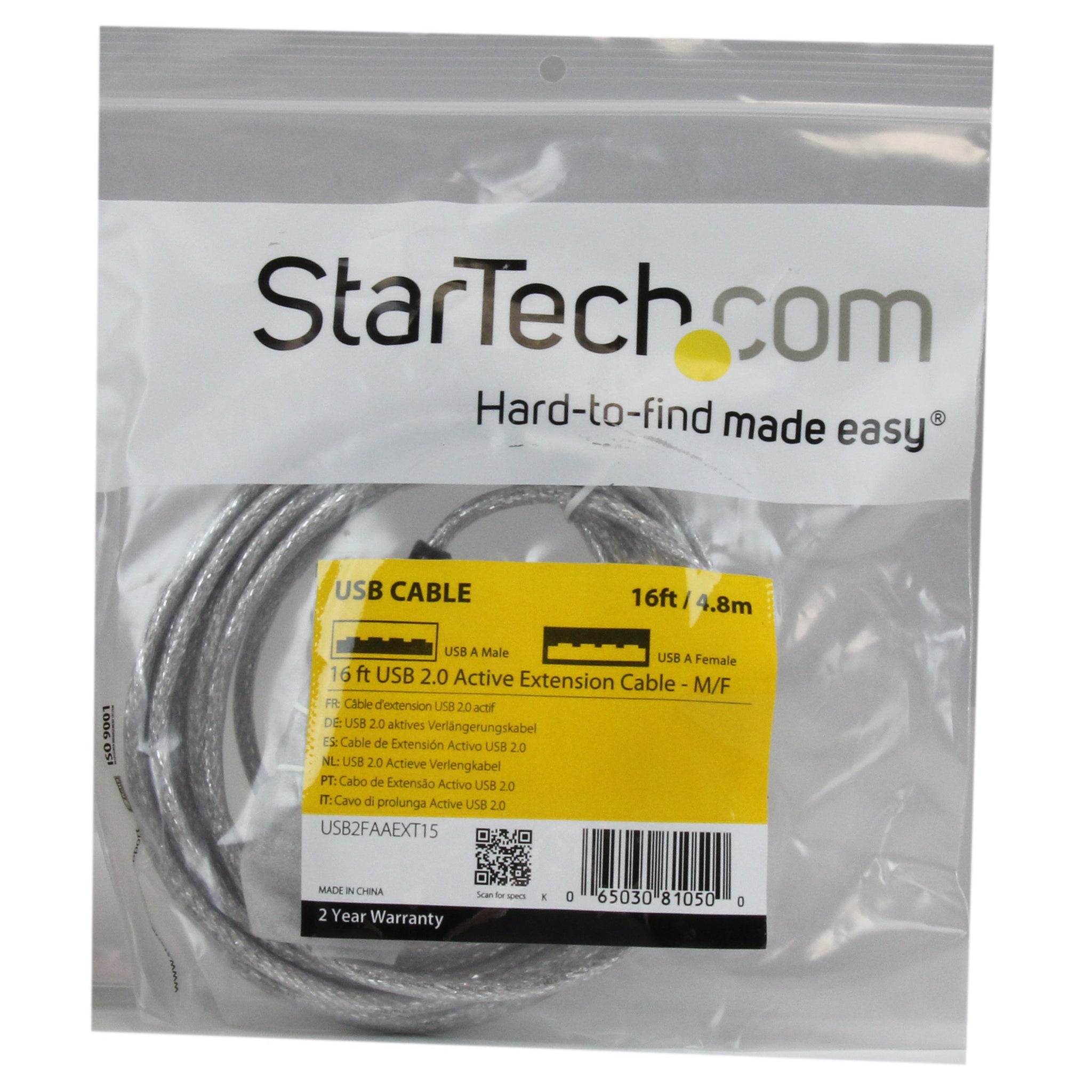 StarTech.com 16 ft USB 2.0 Active Extension Cable - M/F - USB extension cable - USB (M) to USB (F) - USB 2.0 - 15 ft - active - USB2FAAEXT15