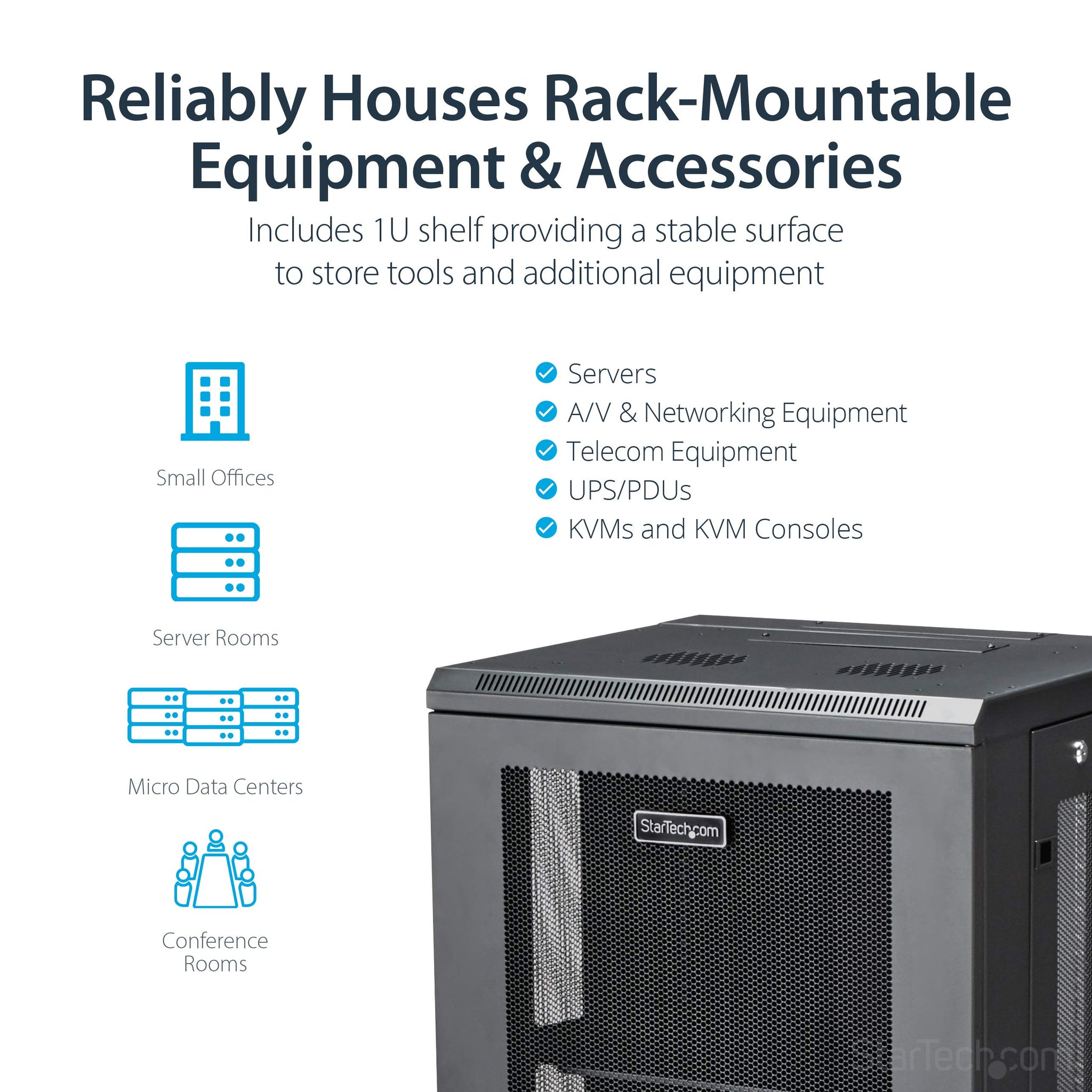 - FOR NETWORK CLOSETS & EDGE CENTERS: This rack is the ideal solution for installations with limited space. It includes a 1U self for non-mountable equipment and a 3-meter roll of cable-and-loop tie for cable management.