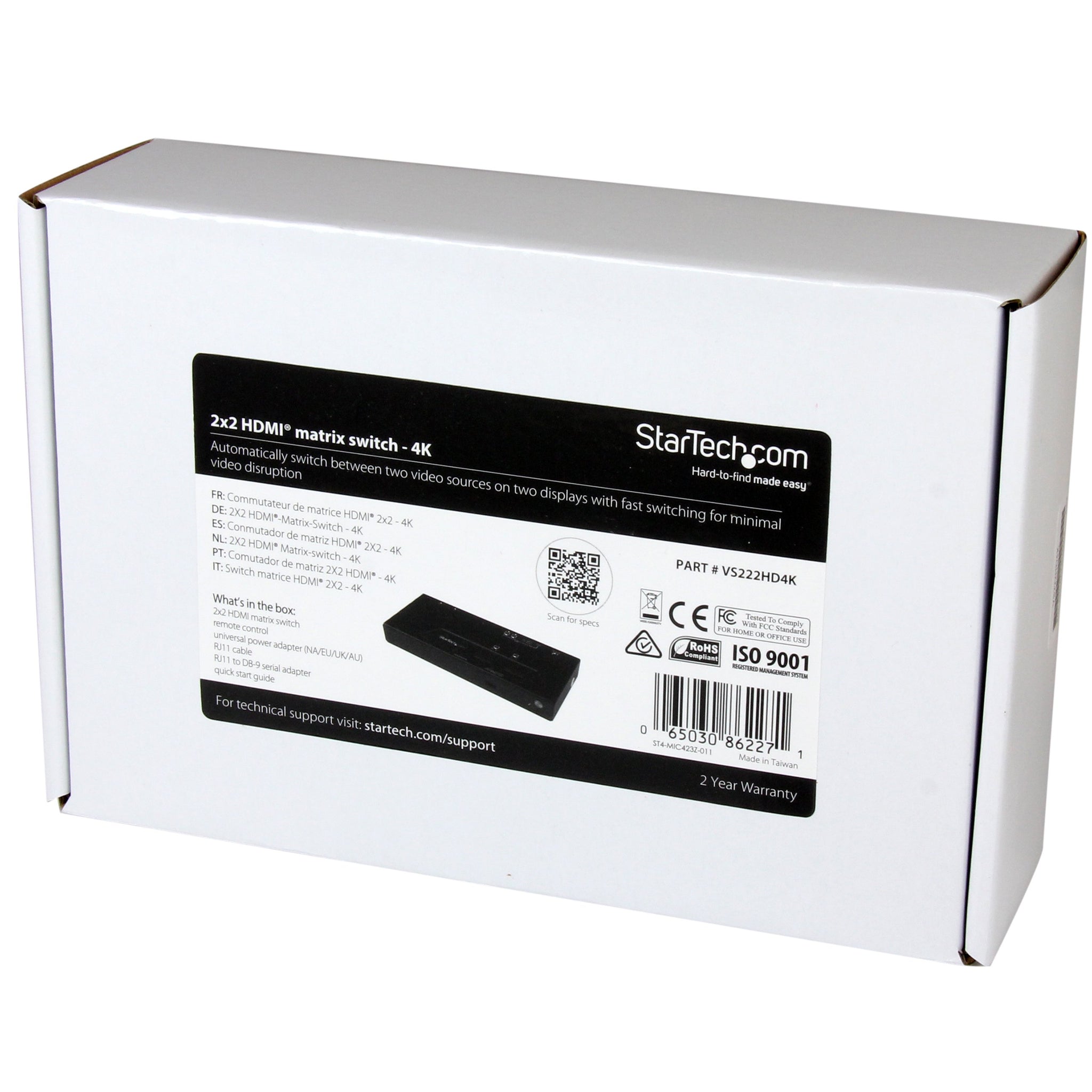 StarTech.com 2x2 HDMI Matrix Switch - 4K UltraHD HDMI Switch with Fast Switching, Auto-Sensing and Serial Control (VS222HD4K)