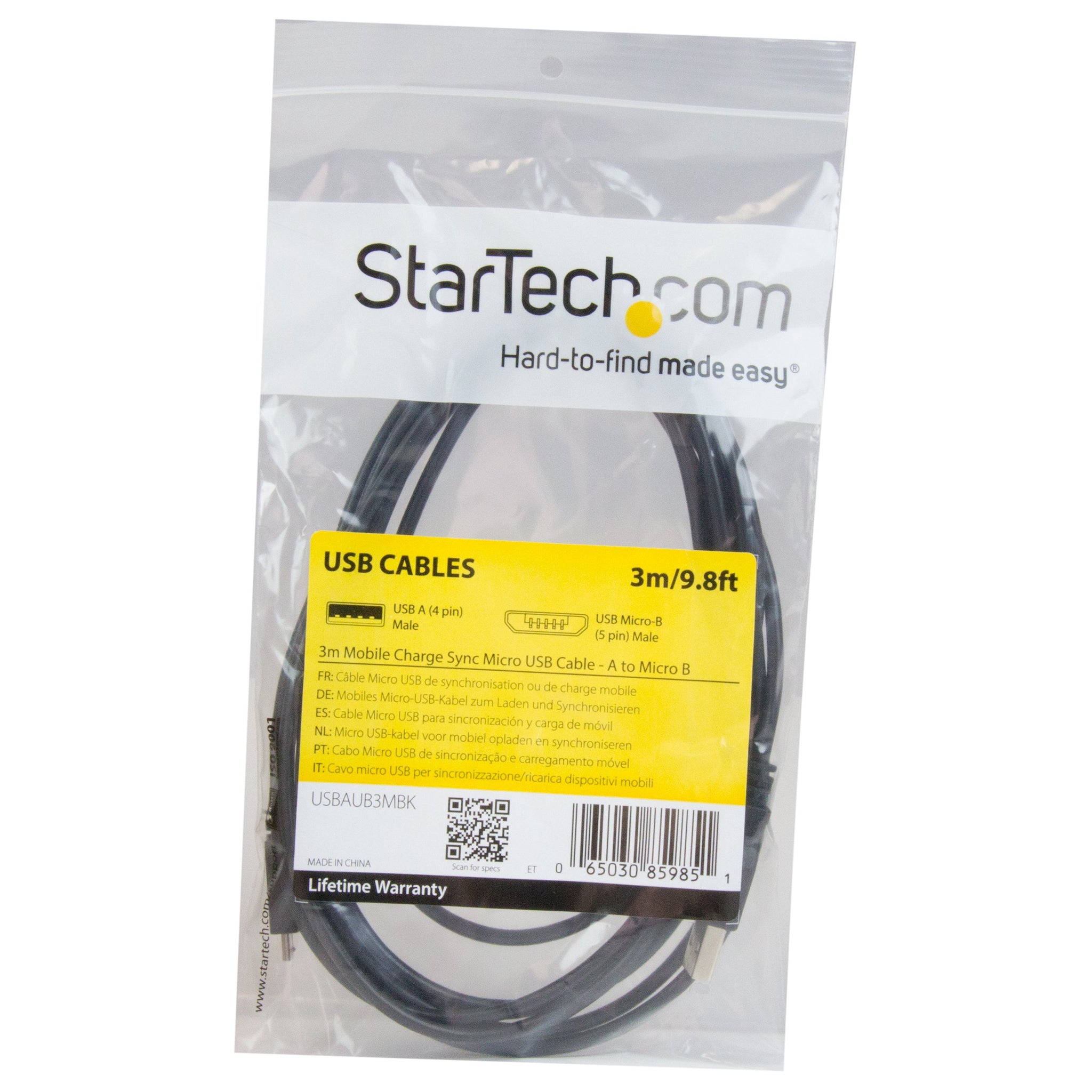 StarTech.com 3m 10 ft Long Micro-USB Charge-and-Sync Cable -M/M - USB to Micro USB Charging Cable - 24 AWG