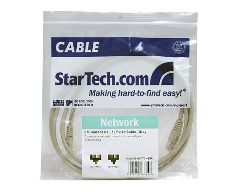 StarTech.com Cat5e Ethernet Cable - 6 ft - Gray - Patch Cable - Molded Cat5e Cable - Short Network Cable - Ethernet Cord - Cat 5e Cable - 6ft (M45PATCH6GR)