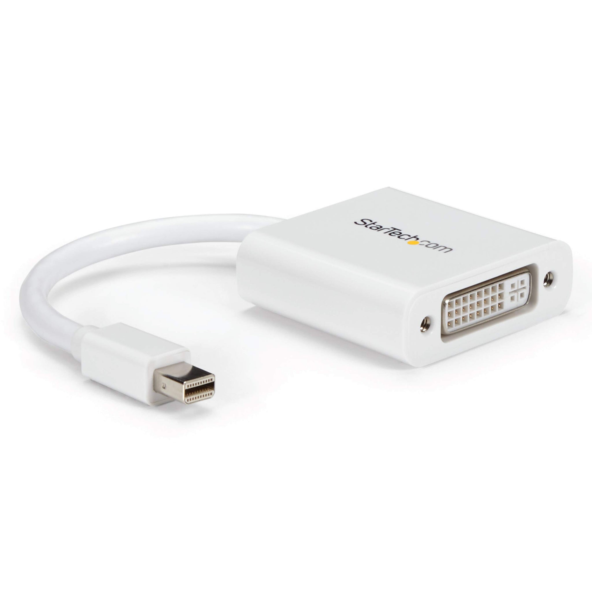 Details: Connect a DVI display to a Mini-DisplayPort®-equipped PC or Mac® computer. The MDP2DVIW passive Mini DisplayPort® to DVI Adapter (White) offers an easy-to-use DVI/Mini-DisplayPort link that enables you to connect a DVI computer monitor to a device with a Mini-DisplayPort output (such as a laptop video out port) or video card.