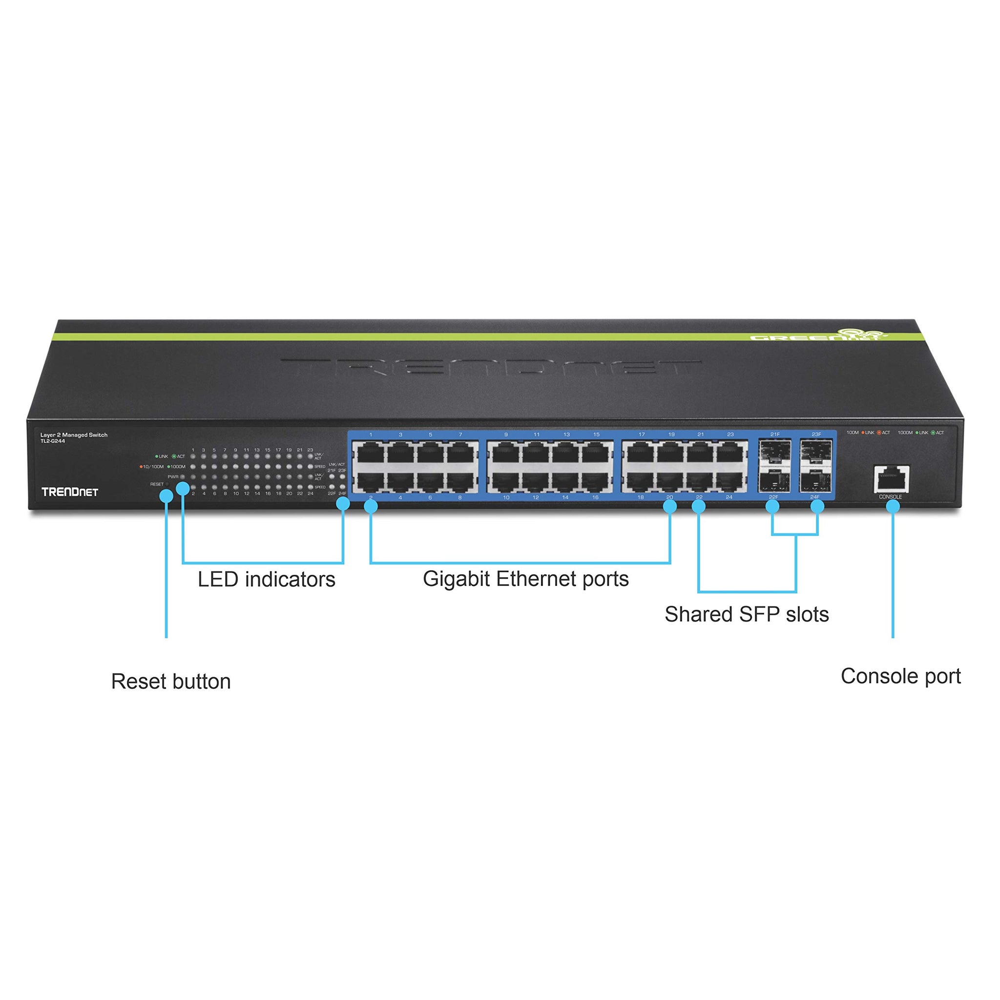 TRENDnet 24-Port Gigabit Layer 2 Switch with 4 Shared Mini-GBIC Slots,TL2-G244