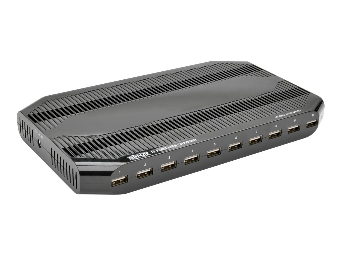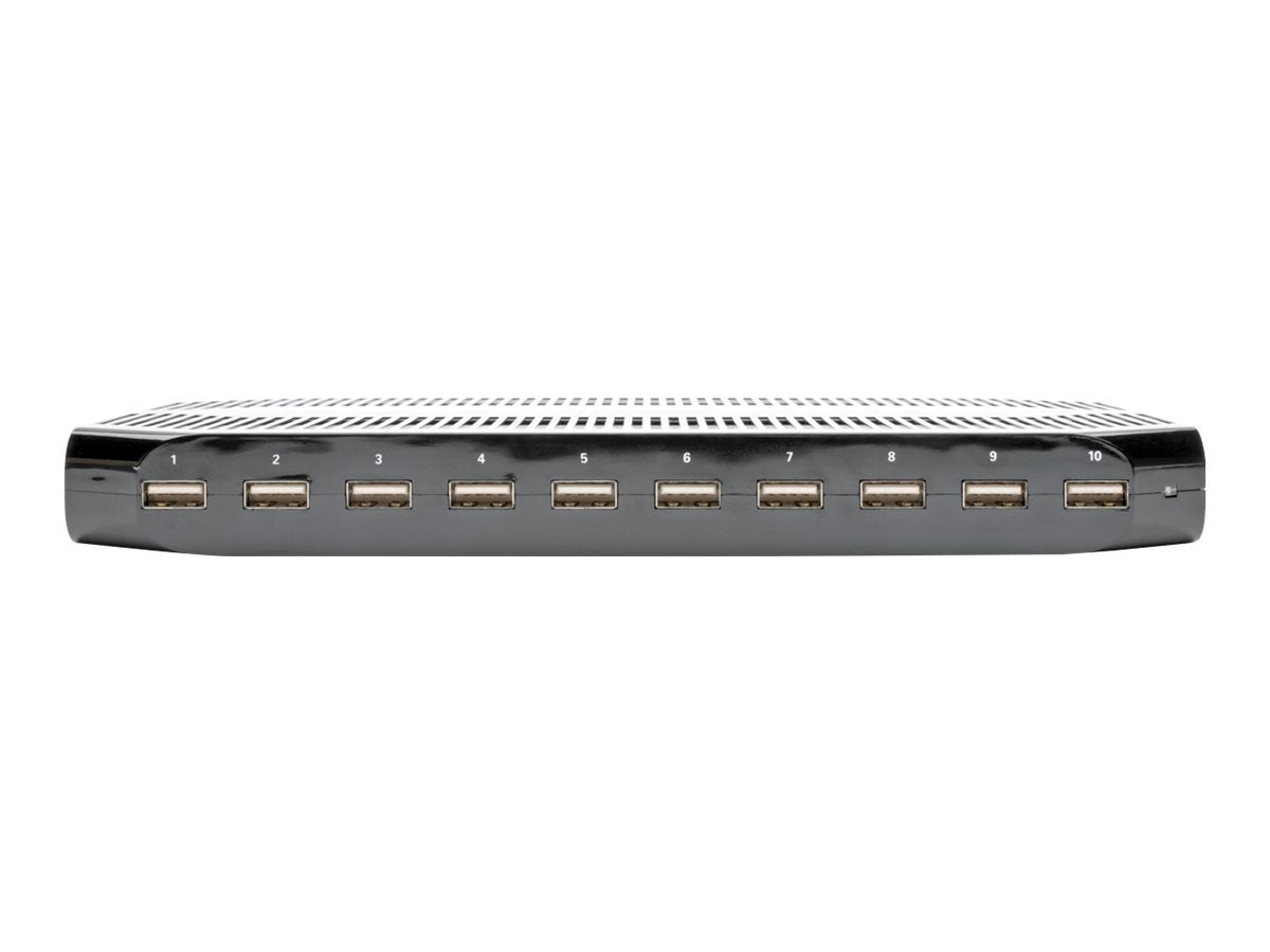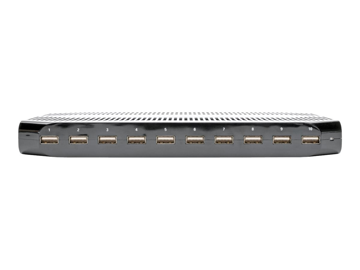 Whether you're at home or in the office, Tripp Lite's U280-010-ST 10-Port USB Charger provides plenty of ports and power to keep all your devices at 100% capacity. No more peering behind furniture to find an available outlet or unplugging one device to charge another. You can charge up to ten tablets, cell phones, laptops and other devices at the same time. It doesn't require a computer, so you can take it anywhere AC power is available. To charge your USB devices, simply plug the included external dual-voltage (100V-240V) power supply into any NEMA 5-15R outlet, and connect your devices to the available USB ports.