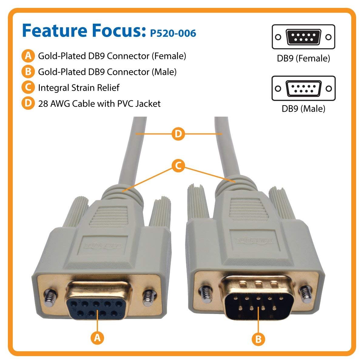 Tripp Lite P520-006 6 Feet CGA/EGA Monitor/Mouse Extension Cable DB9M/F