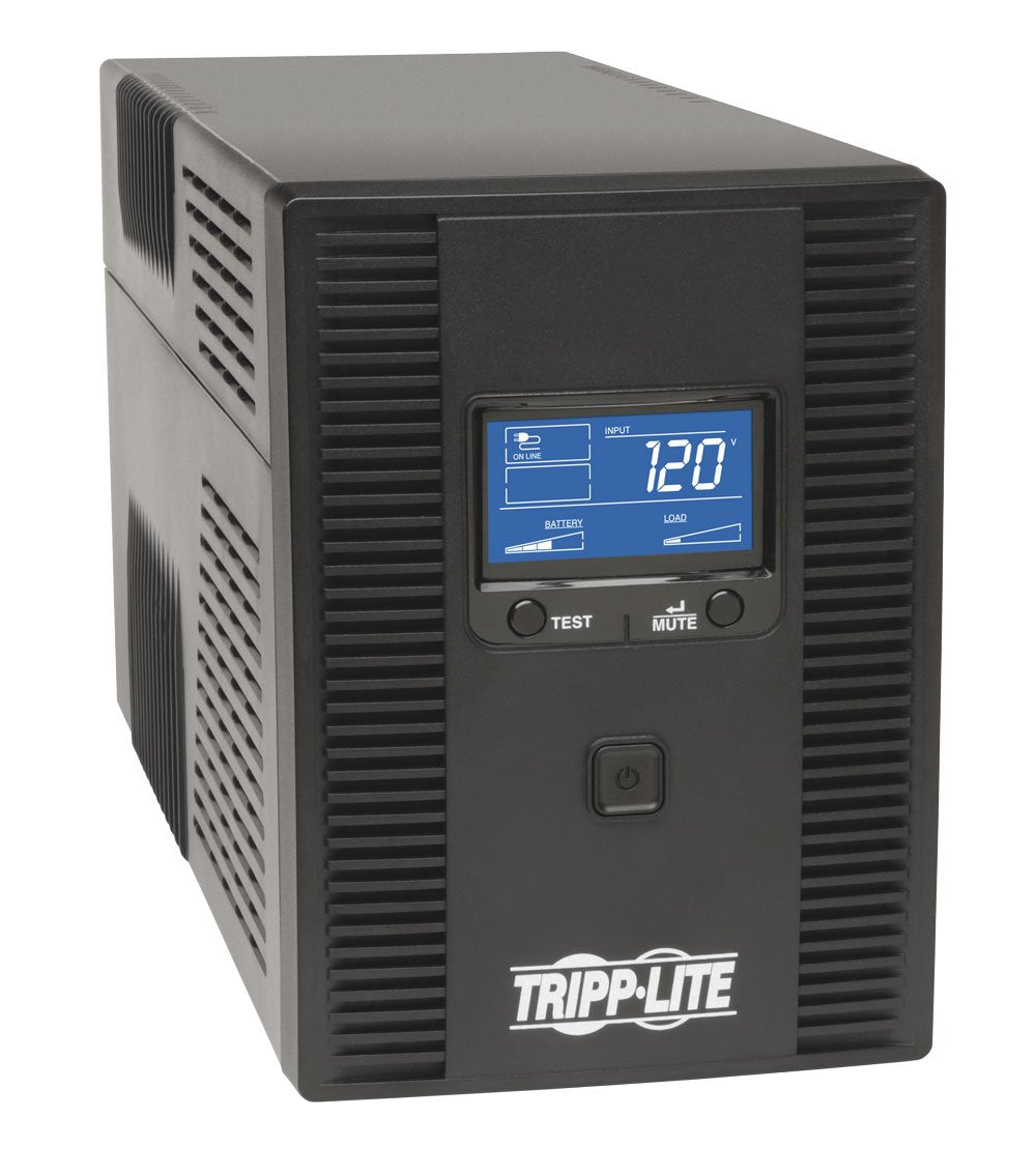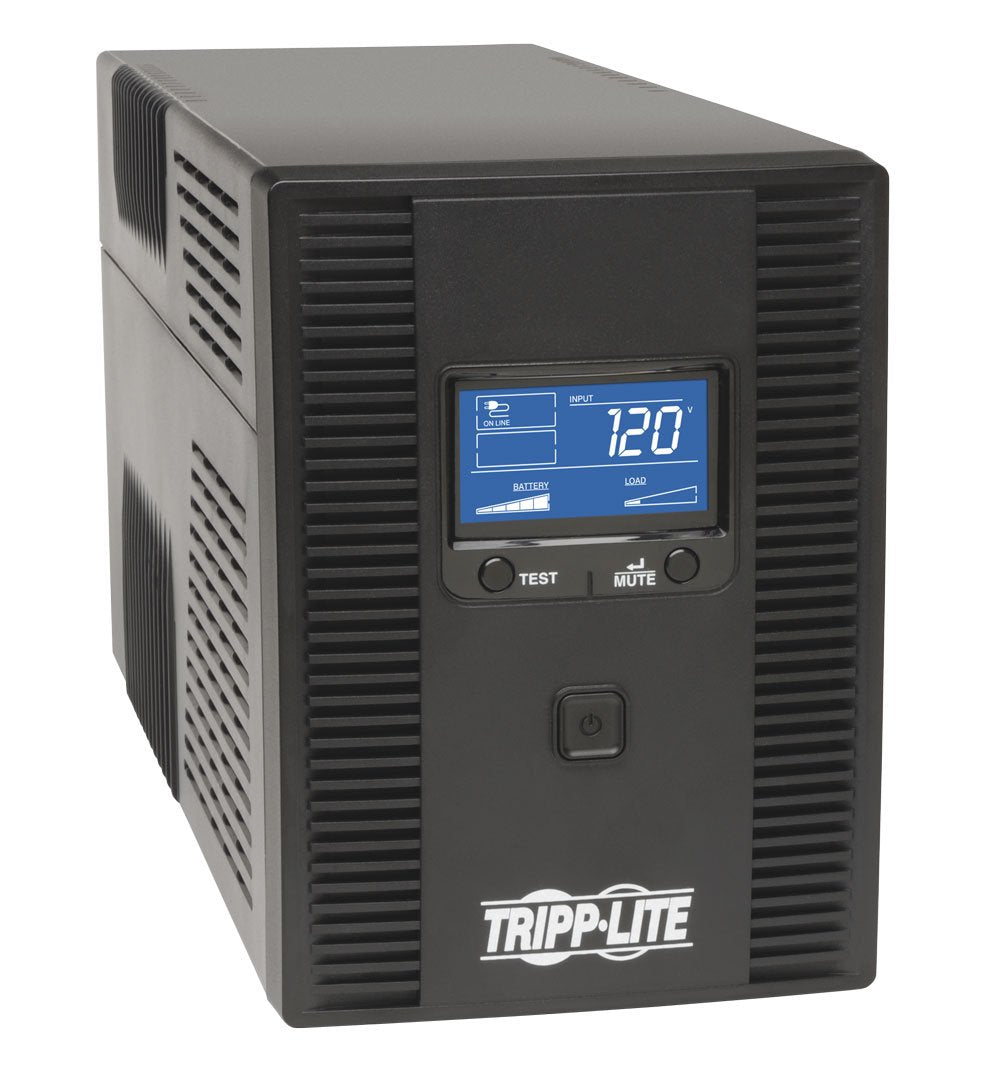 Details: The SMART1300LCDT SmartPro LCD 120V, 1300VA/720W Line-Interactive Uninterruptible Power Supply provides battery backup and AC power protection against blackouts, brownouts, power surges and line noise that can damage electronics or destroy data. Ideal for backing up your desktop computer or audio/visual components, this line-interactive UPS switches to battery backup mode in milliseconds to keep your connected equipment running long enough to save files and shut down safely with no data loss. While all eight NEMA 5-15R outlets protect against surges, four outlets also provide up to 64 minutes of UPS battery support for a basic desktop PC and LCD monitor and up to 10 minutes of support at half load (360W). Automatic voltage regulation (AVR) corrects undervoltages as low as 92V and overvoltages as high as 150V without using any battery power. EMI/RFI noise filtering improves your equipment’s performance and prevents damage. A 650-joule surge suppression rating protects your equipment from harmful power surges. NEMA 5-15P plug with 6-foot cord connects to any NEMA 5-15R socket. Large LCD screen shows real-time input voltage, overload, AVR, remaining battery runtime and battery statuses at a glance. Alarm sounds to indicate power loss or low battery. With Tripp Lite’s free PowerAlert software (available via free web download), the SMART1300LCDT enables safe unattended system shutdown and file saves in case of a prolonged power failure.