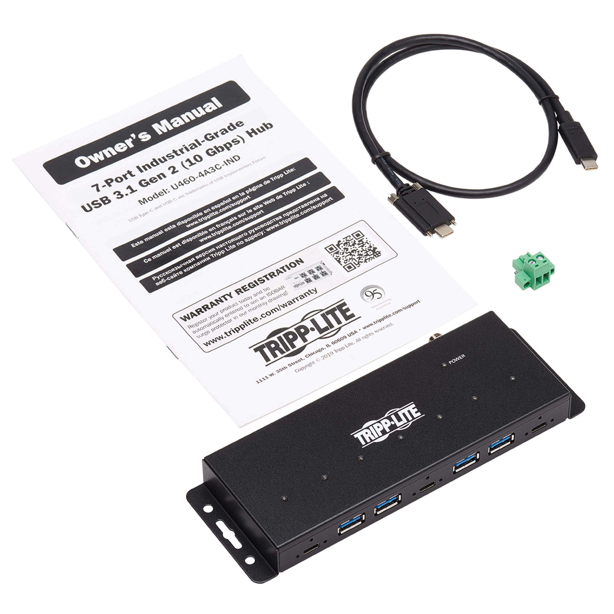 USB Hub 7-Port Industrial 4 USB-A & 3 USB C ESD Immunity Metal