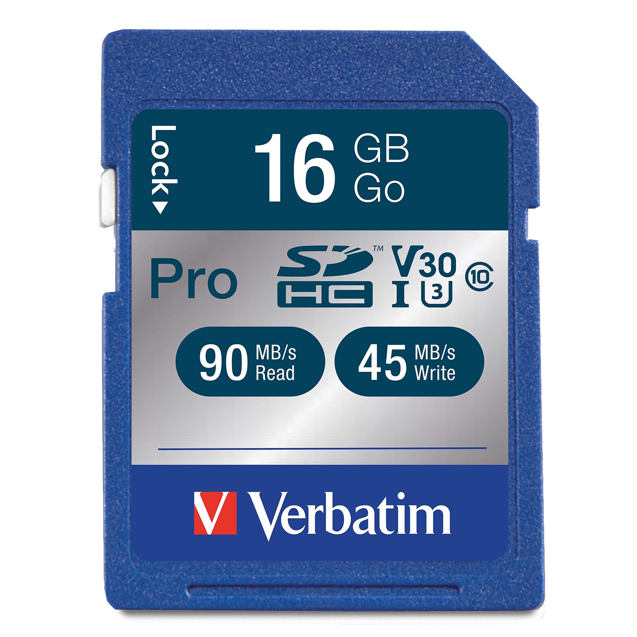 Verbatim 16GB Pro 600X SDHC Memory Card, UHS-1 U3 Class 10 - 98046