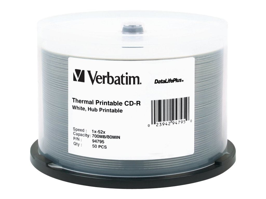Verbatim 700MB 52x DataLifePlus White Thermal Hub Printable Recordable Disc CD-R, 50-Disc Spindle 94795
