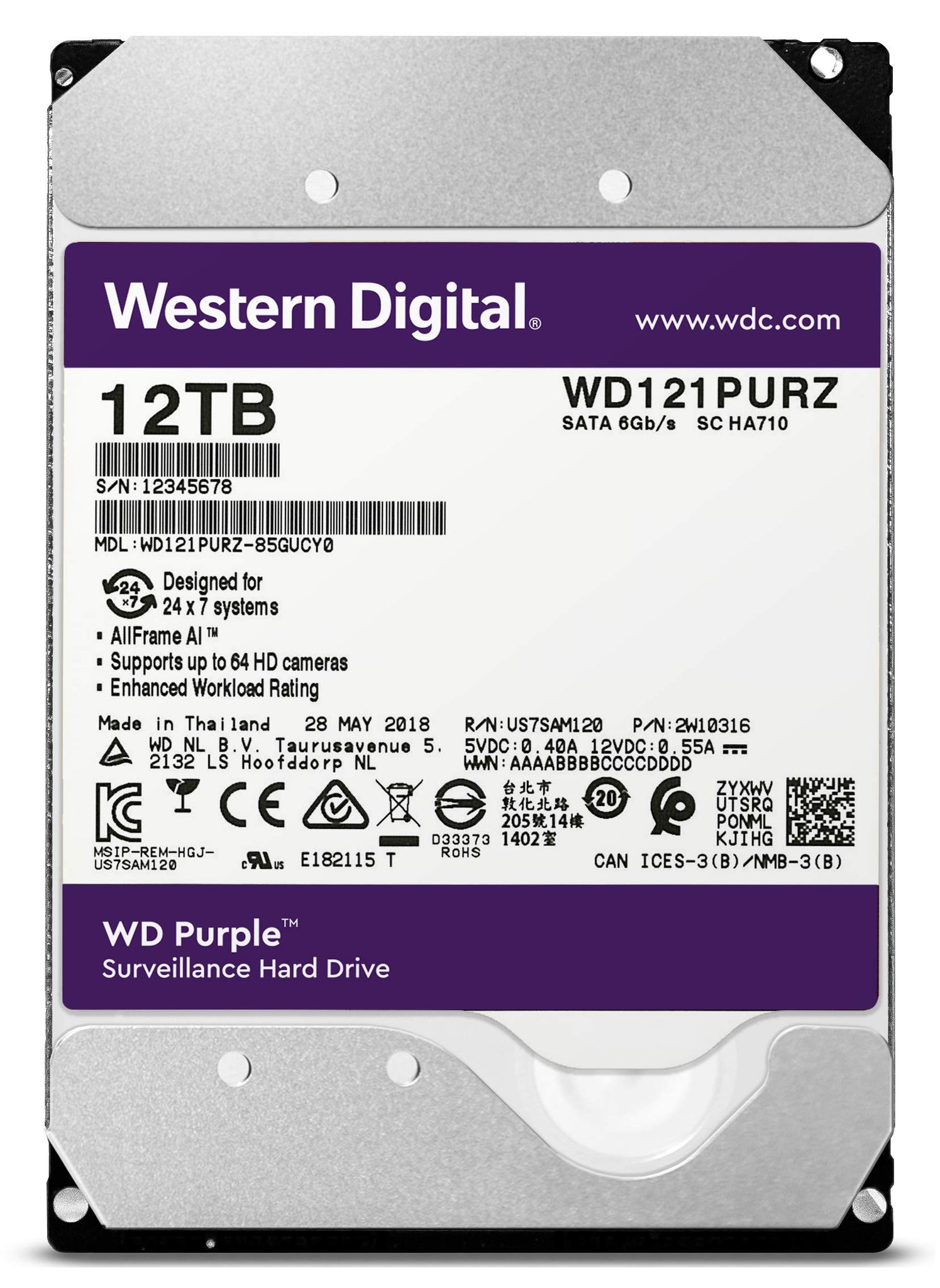 Details: WD Purple WD121PURZ 12TB 3.5" Internal Hard Drive - SATA - 7200rpm - 256MB Buffer