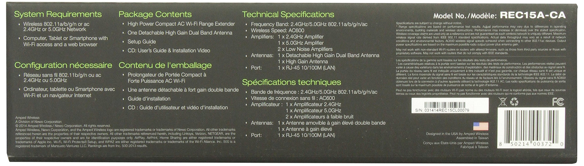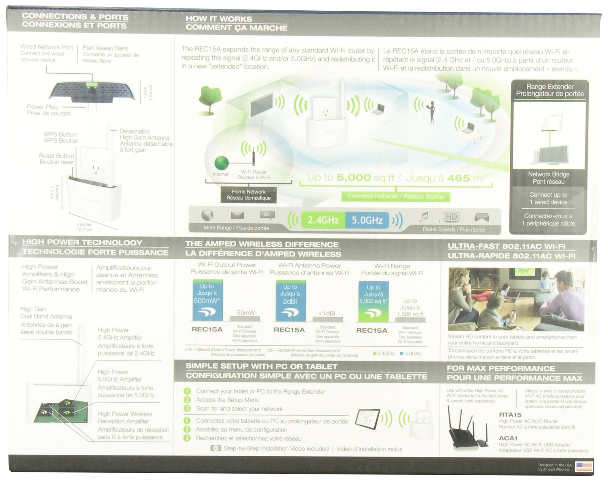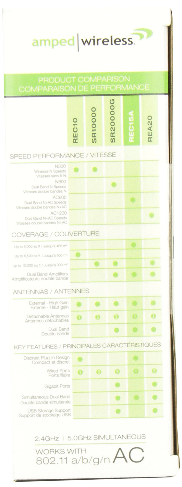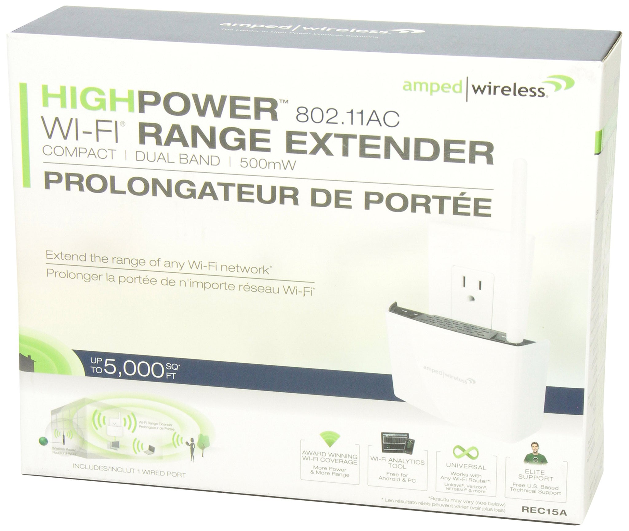 AMPED WIRELESS REC15A-CA High Power Compact AC 2.4GHz Wifi Extender 802.11 a/b/g/n/ac