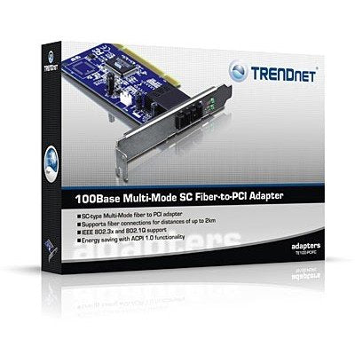 The 100Base Multi-Mode SC Fiber-to-PCI Adapter (model TE100-PCIFC) provides a reliable high performance connection from a PC or server to a Multi-Mode SC-type fiber connector for distances of up to 2 kilometers (1.2 miles). Full-duplex mode supports data transfer speeds of up to 200Mbps. Supports IEEE 802.3x Flow Control and 802.1Q VLAN. Optimize power consumption with advanced Configuration Power Management Interface (ACPI 1.0) technology.
