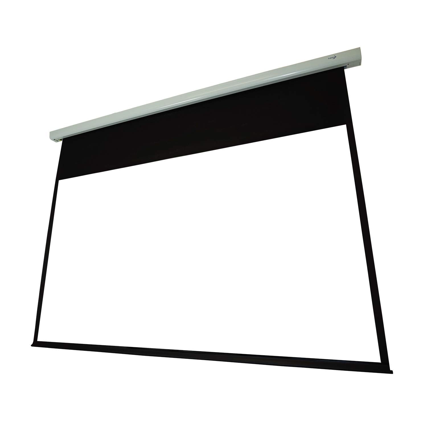 The EluneVision 128" Luna motorized projector screen brings home the full cinema experience. This durable and attractive screen features a 16:9 aspect ratio and ultra-wide 160-degree viewing angle. A weighted steel bar keeps the screen flat and wrinkle-free, and synchronous motors create minimal noise. The bottom of the screen is equipped with a weighted steel bar, which keeps the screen flat and wrinkle-free for years to come. Features a square housing that lets you use a rail mounting system, so you can mount it on the ceiling or use chain mounting or wall mounting. Recommended for use with any 1080p projector for the best image quality. Includes one RF remote, wall panel, and 110V power plug for plug and play operation. The Cinema Grey fabric provides 1.1 gain and is burn-resistant, mildew-proof, and antistatic-treated to shrug off any dust. The screen can be washed if needed, to maintain the sharp imagery. The triple-layered screen material provides excellent image color and uniformity.