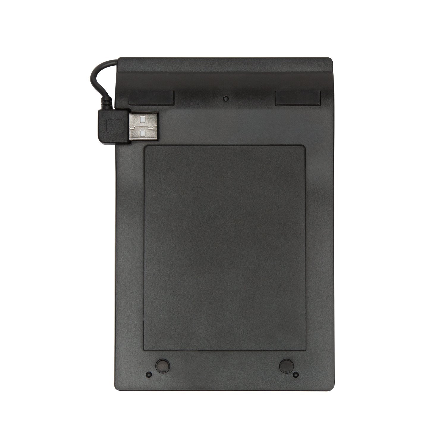 - USB wired connection with storable USB connector hides cable to safely transport and reduce cable clutter. Simple plug and play installation.