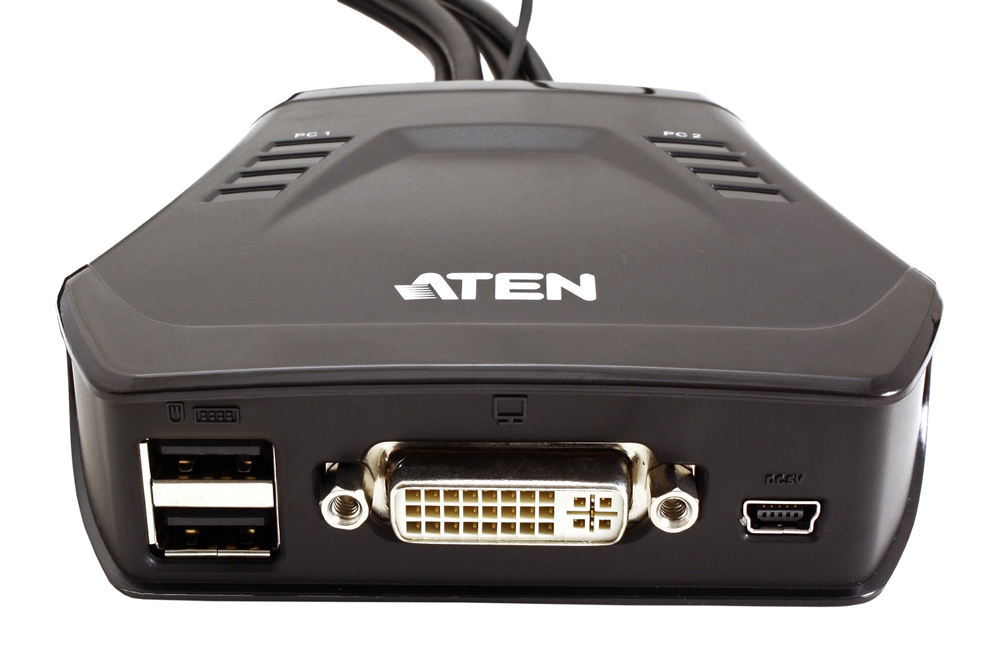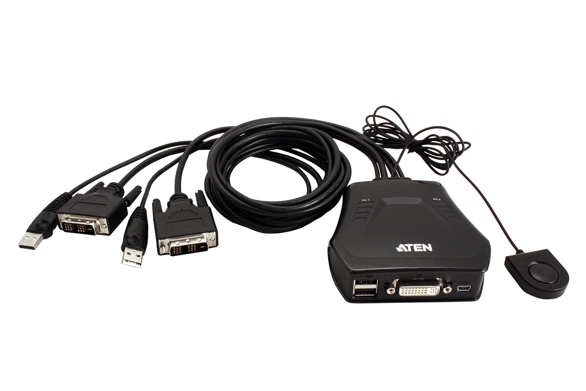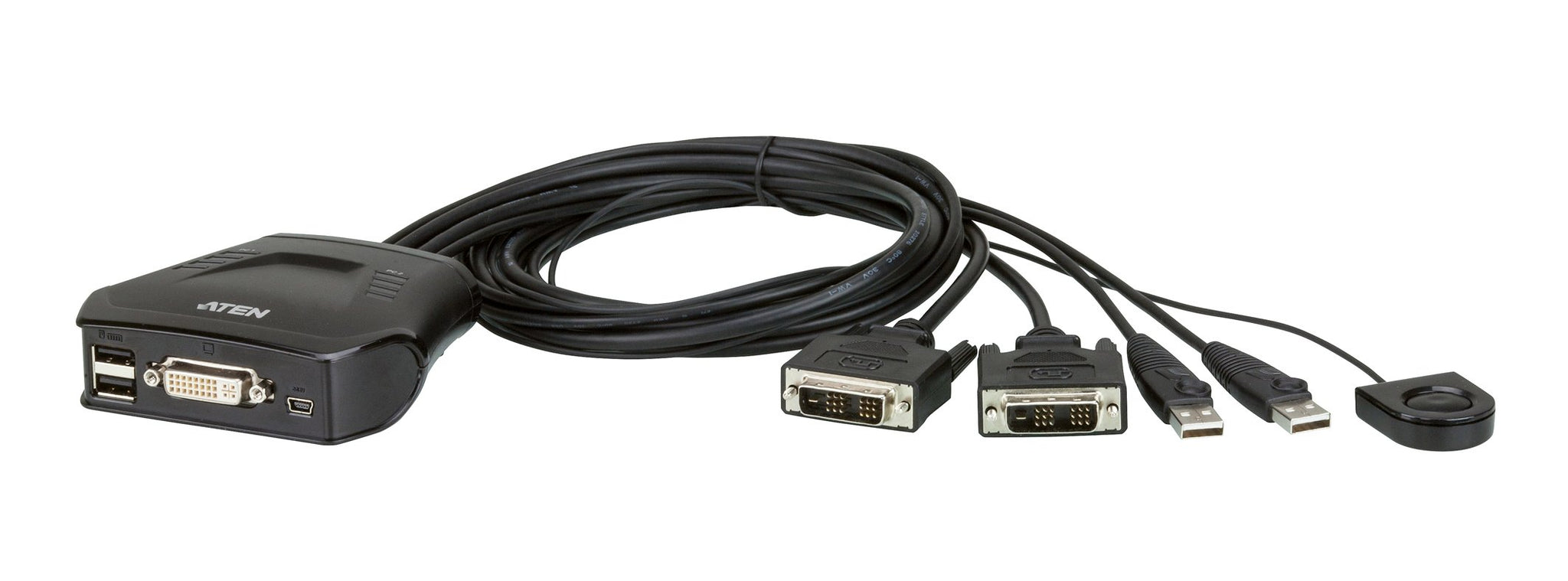 - Allows access to two computers from a single USB and DVI console (keyboard, video and mouse)
