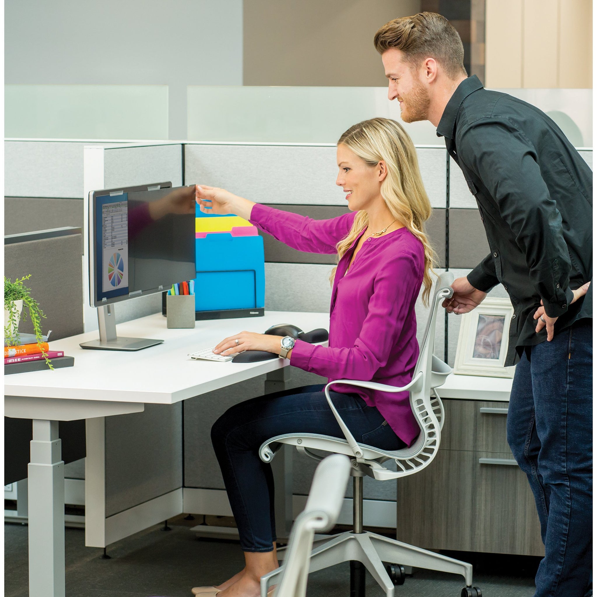- Reversible; Matte side helps reduce glare and filter is compatible with touchscreen laptops and monitors