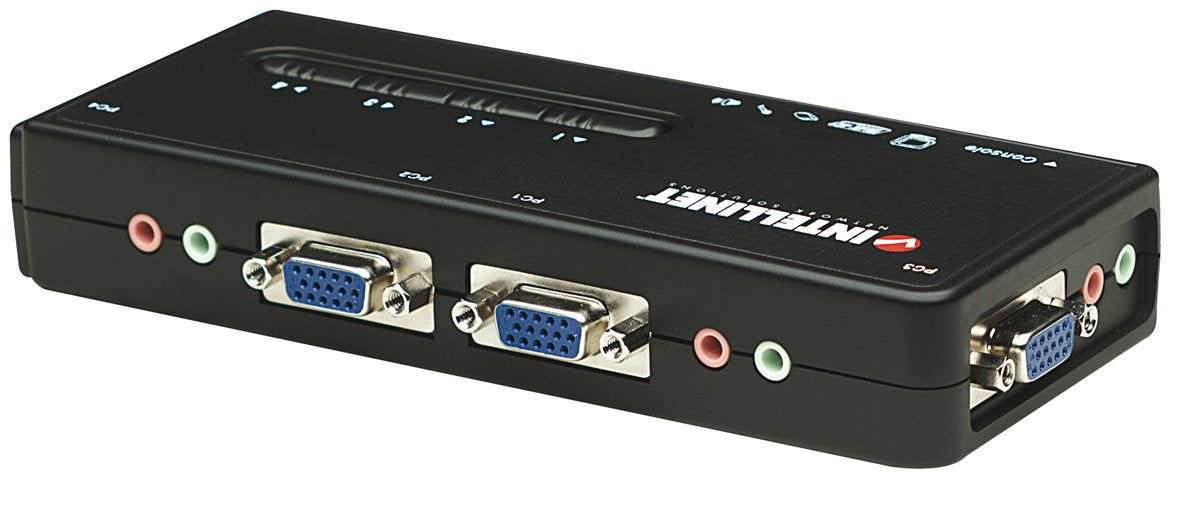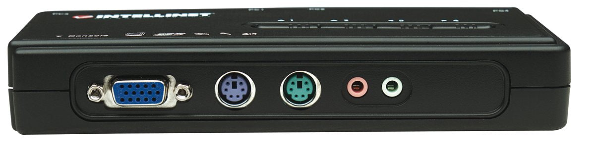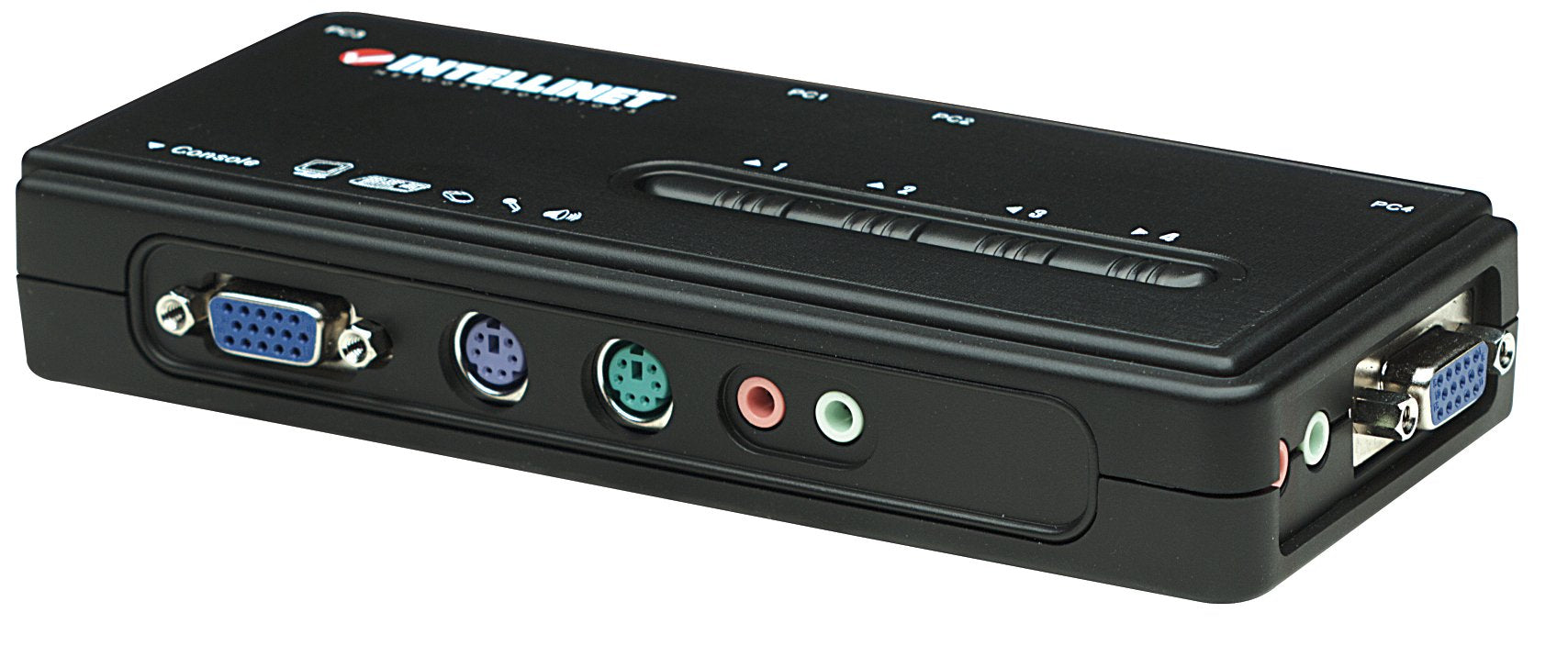 Details: Manage/control 4 PS/2 computers from a single keyboard, monitor and mouseAudio and microphone switching for uninterrupted multimedia experience across multi-platformsHot-plugging PCs for maintenance without powering down the KVM Switch or PCsChannel selection via push buttons and keyboard hotkeysSupports resolutions up to 2048 x 1536 pixelsNo external power adapter requiredIncludes 4 connection cables for computer connectionIncludes 4 connection cables for speaker and microphone