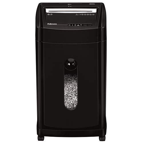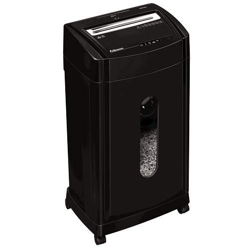 - Fellowes shredder shreds 12 sheets of paper per pass into 2,154 (5/64" x 9/16") micro cut particles (security level P-5); Shredder can also destroy staples, credit cards, CDs and DVDs
