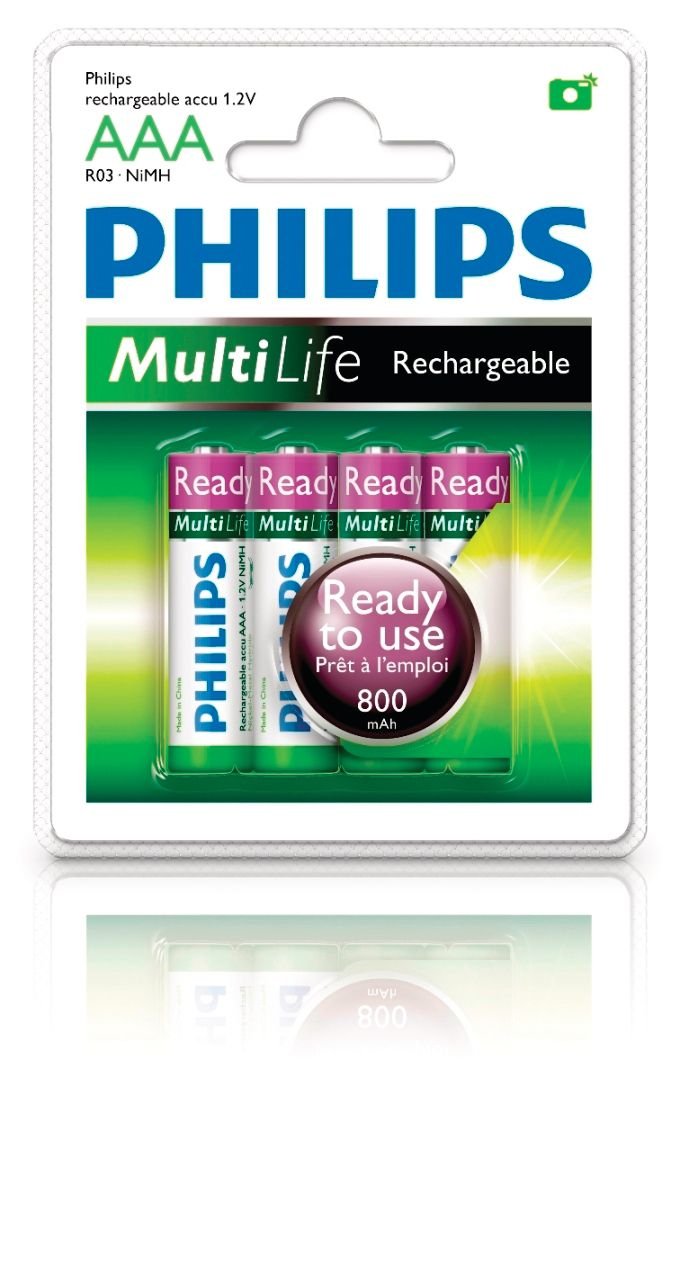 Details: Philips Rechargeables Battery - 800 mAh - AAA - Nickel Metal Hydride (NiMH) - 1.2 V DC - 4 / Pack