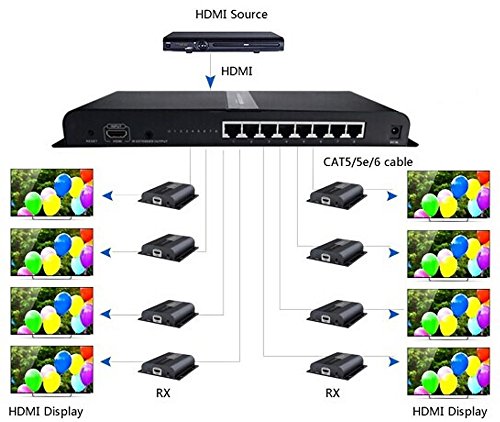 - Hdmi splitter, 8 way extender with IR on cable Cat6/6a/7 up to 120m