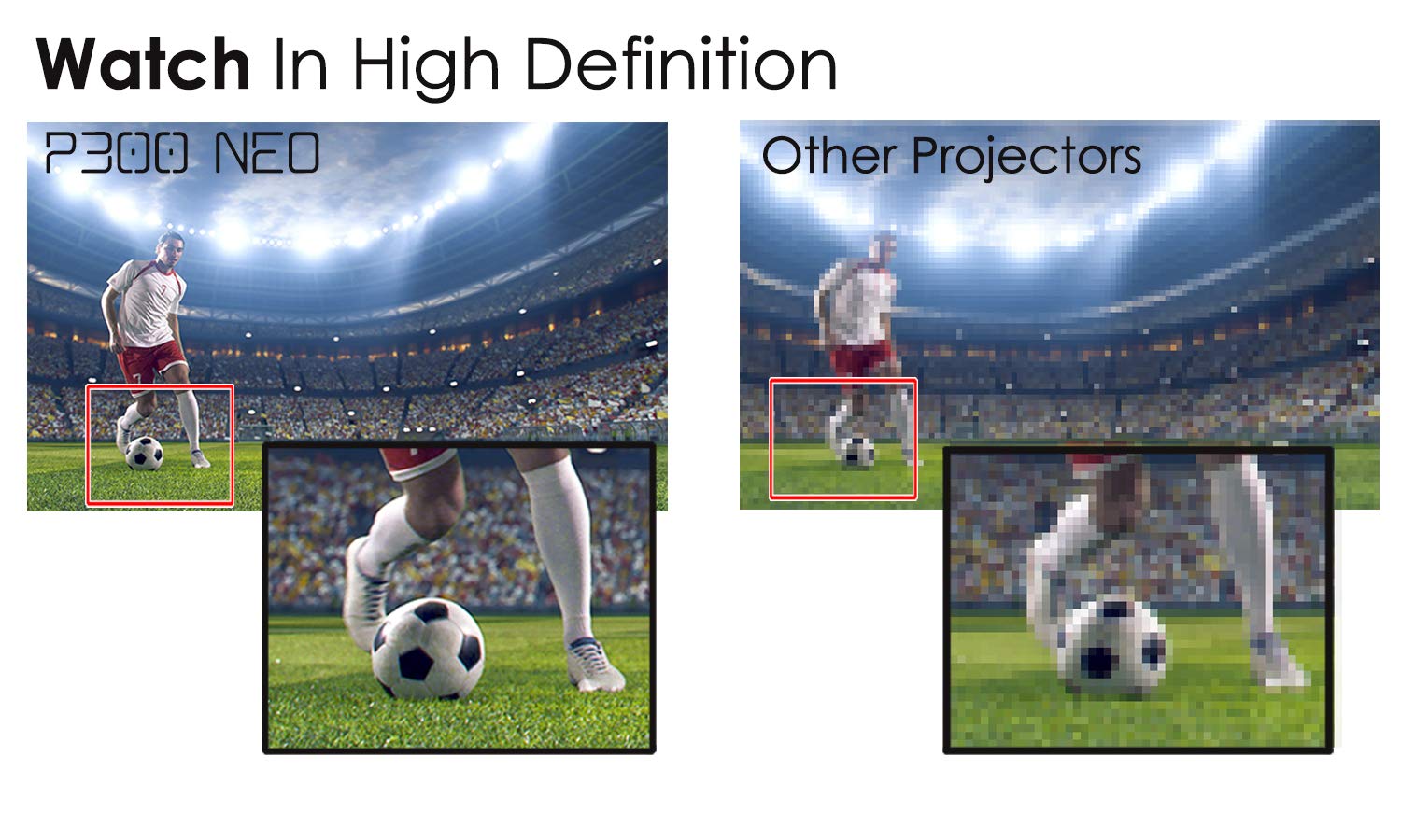 Details: The P300 Neo Smart builds on the success of the P300 Neo by adding Android OS and WiFi/Bluetooth features. Take your favorite streaming apps with you or mirror your smartphone or tablet with the P300 Neo Smart. Utilize the Bluetooth connectivity to add bluetooth speakers for Home Theater sound or add a keyboard/mouse for easy navigation. The P300 Neo Smart houses a revised DLP optical engine that delivers 400 LED Lumens of brightness at a native resolution of 1280x720. Powered by a 30,000 hour LED light source the P300 Neo Smart can deliver up to 120" images (in dark areas) and offers truly pocketable high-powered projection.