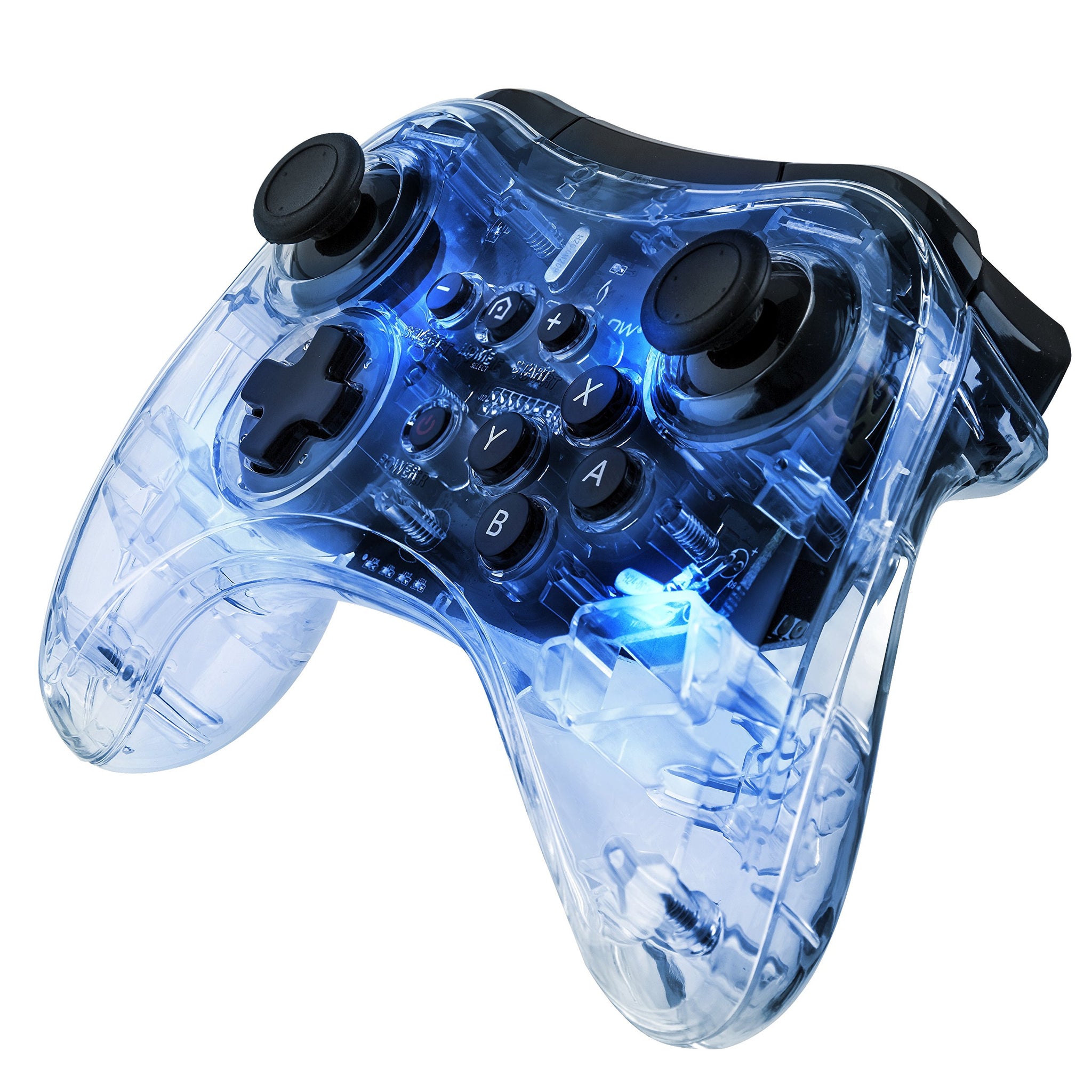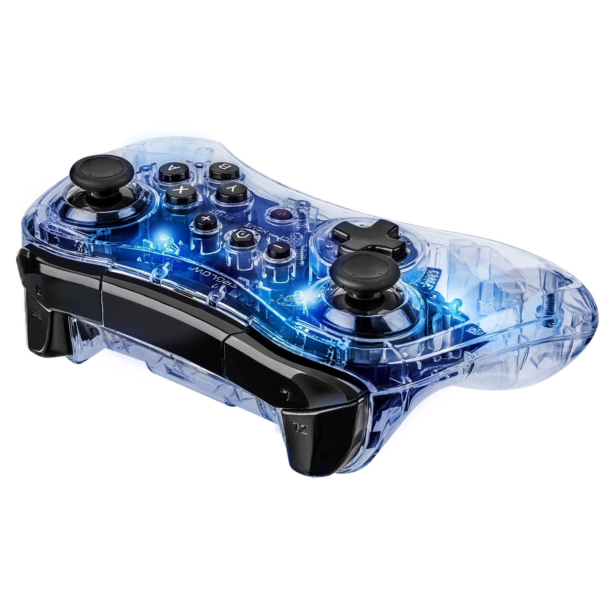 Details: Enhance your gaming experience with the Afterglow Pro Controller designed for the Wii U console. Featuring clear polycarbonate housing that reveals the controller's inner circuitry and signature Afterglow blue lighting; this controller is the perfect blend of performance and value. Enjoy 2 lighting modes: ON, and OFF, along with custom-engineered SmartTrack technology for superior analog stick accuracy. The hassle-free wireless connection, enhanced L/R and ZL/ZR buttons, and compatibility with Energizer Xbox One Chargers makes it the perfect pro controller for Wii U gamers.