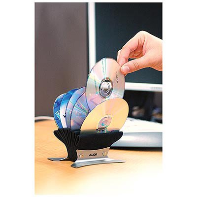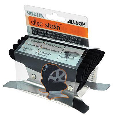 Details: Features: Well, instead of leaving discs in a pile on the corner of the TV stand, Stash 'Em. The CD Stash will hold 6 discs vertically and separated from one another. Made from a durable and soft micro fiber cloth, you can even use it to clean the dust off of your valuable and well-used shiny discs.