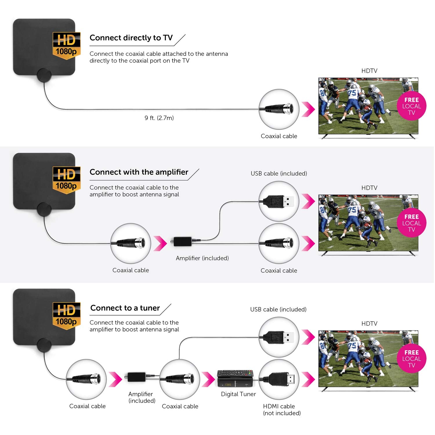 Aluratek Indoor HD Digital Amplified TV Antenna (Free Over-The-Air) HDTV Channels