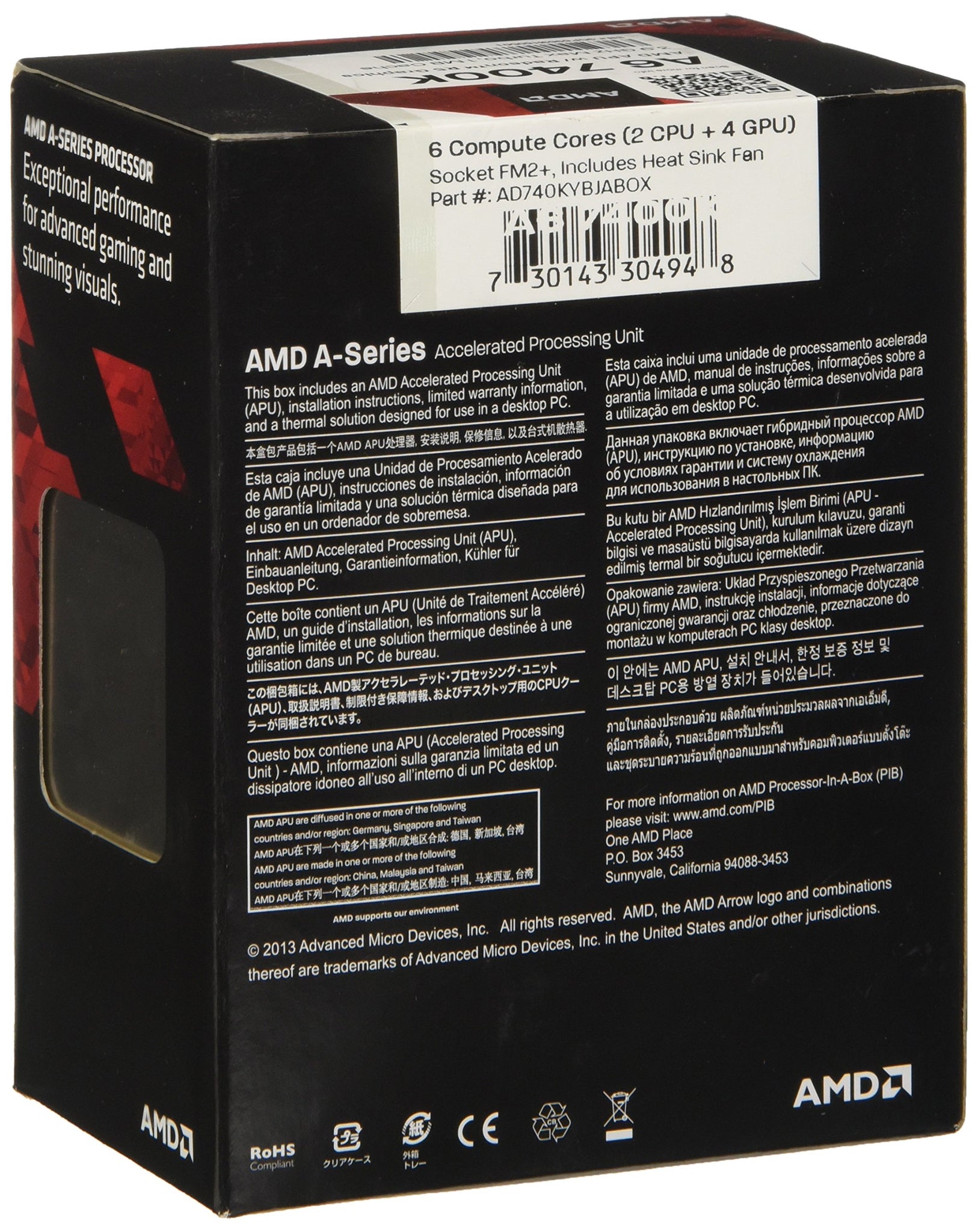 AMD CPU AD740KYBJABOX APU A6 X2 7400K FM2+ 1MB 3900MHz Box 65W Black