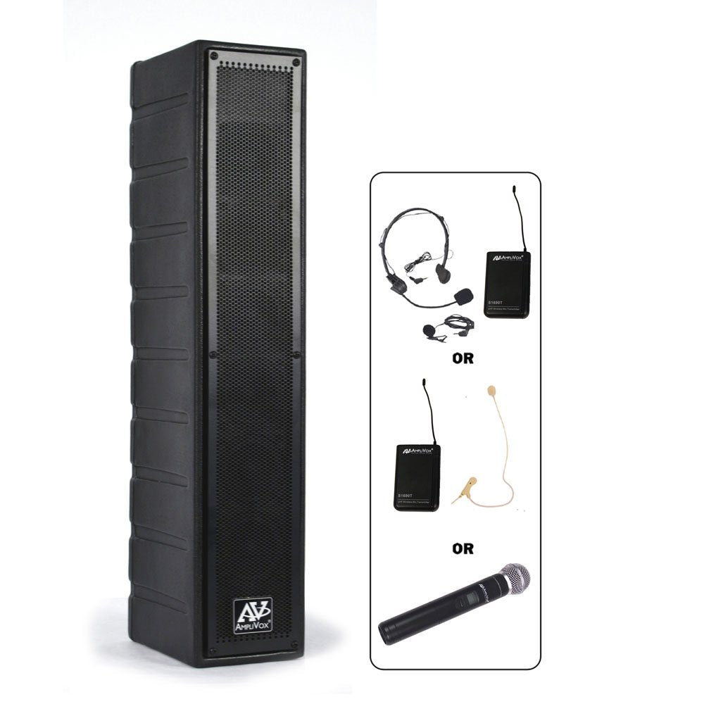 Amplivox SW1234 16-Channel 50W Line Array Amplified Speaker with Wireless Microphone