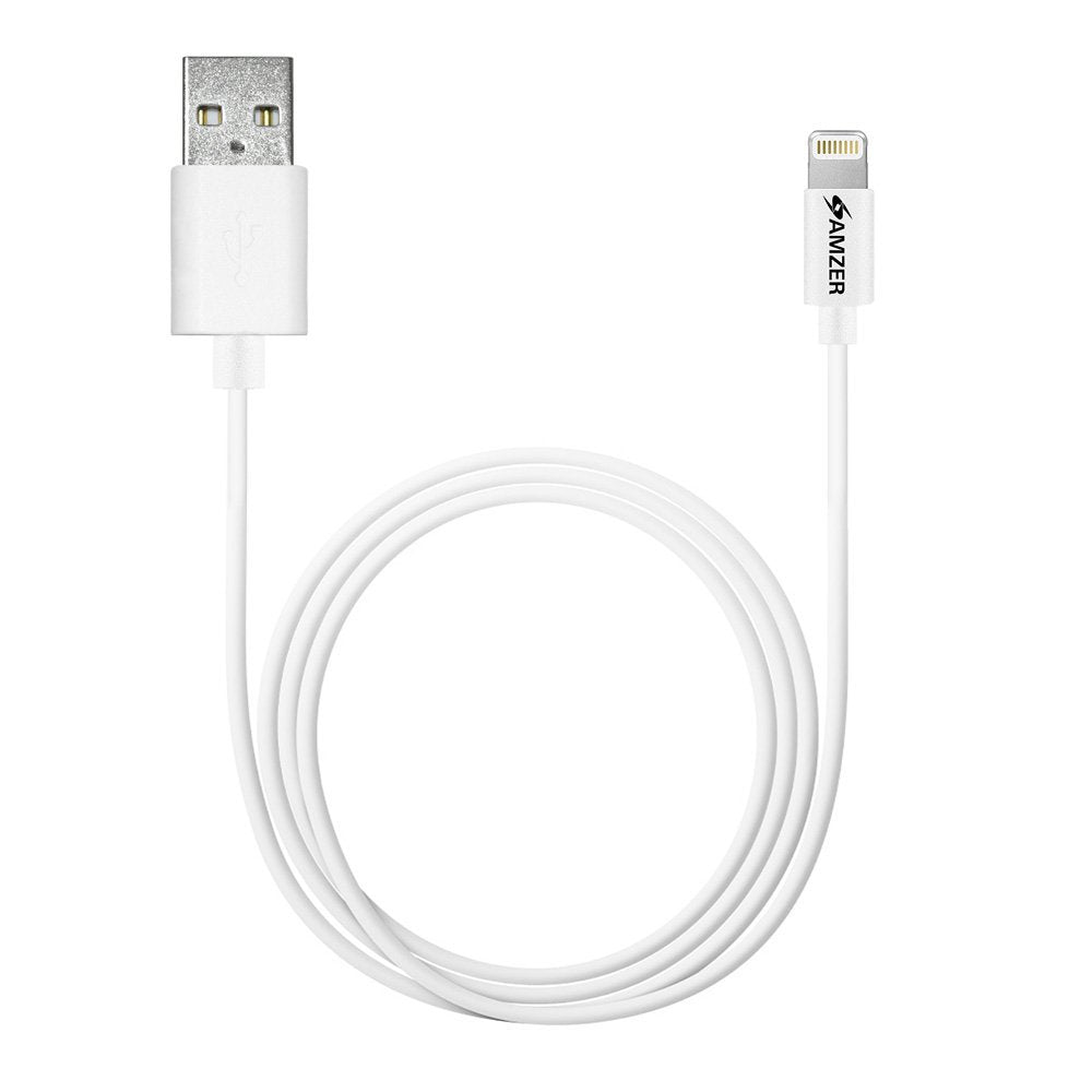 Amzer MFi Certified 1.8m Sync and Charge Lightning to USB Cable - Retail Packaging - White