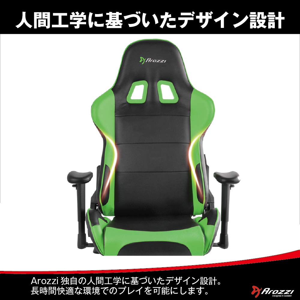 AROZZI VERONA-V2-GN Advanced Racing Style Gaming Chair with High Backrest, Recliner, Swivel, Tilt, Rocker and Seat Height Adjustment, Lumbar and Headrest Pillows Included, Green