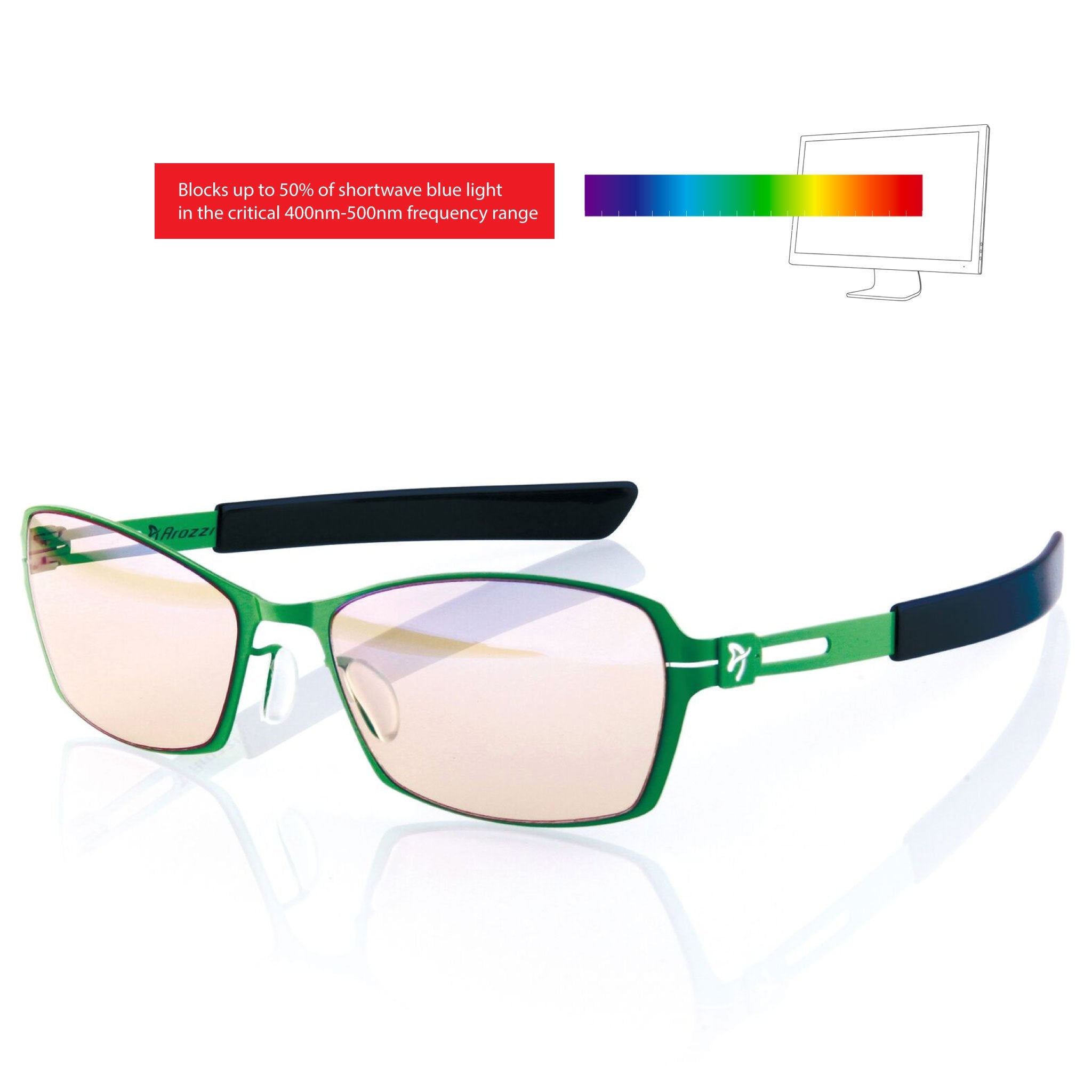 Arozzi Visione VX-500 Computer gaming glasses - Anti-glare, UV and Blue light protection, Eye strain relief, Comfortable gaming, Green