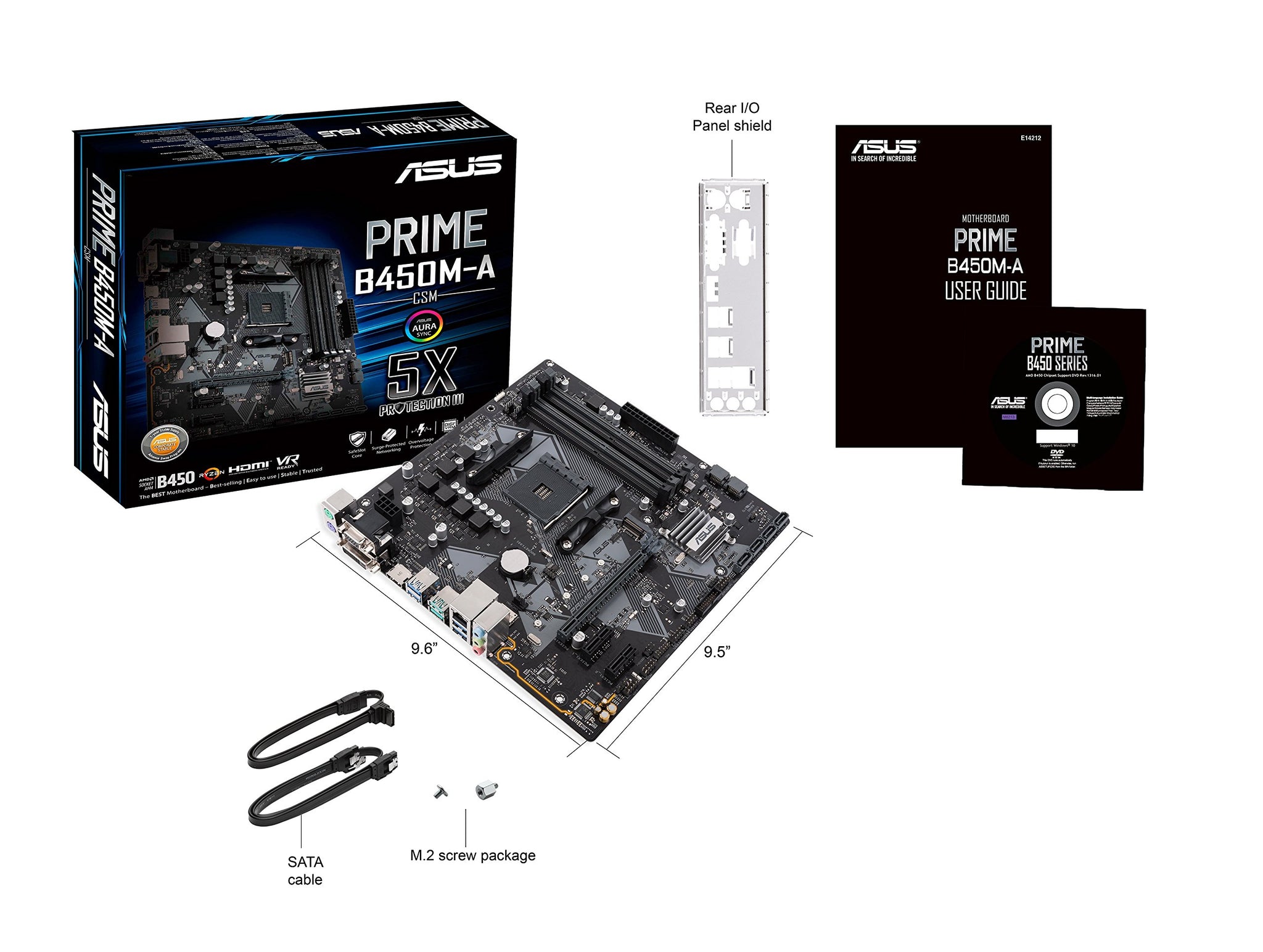 Asus Prime B450M-A/CSM AMD Ryzen 2 AM4 DDR4 HDMI DVI VGA M.2 USB 3.1 Gen2 mATX Motherboard