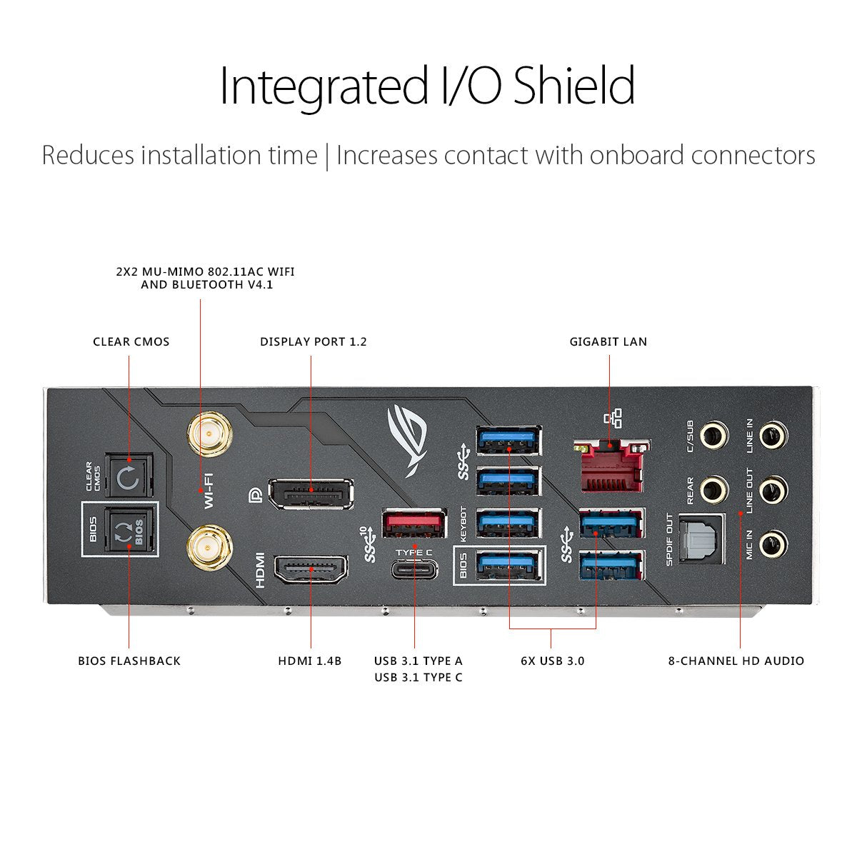 - Integrated I/O shield reduces installation time and increases contact with ports for improved connectivity