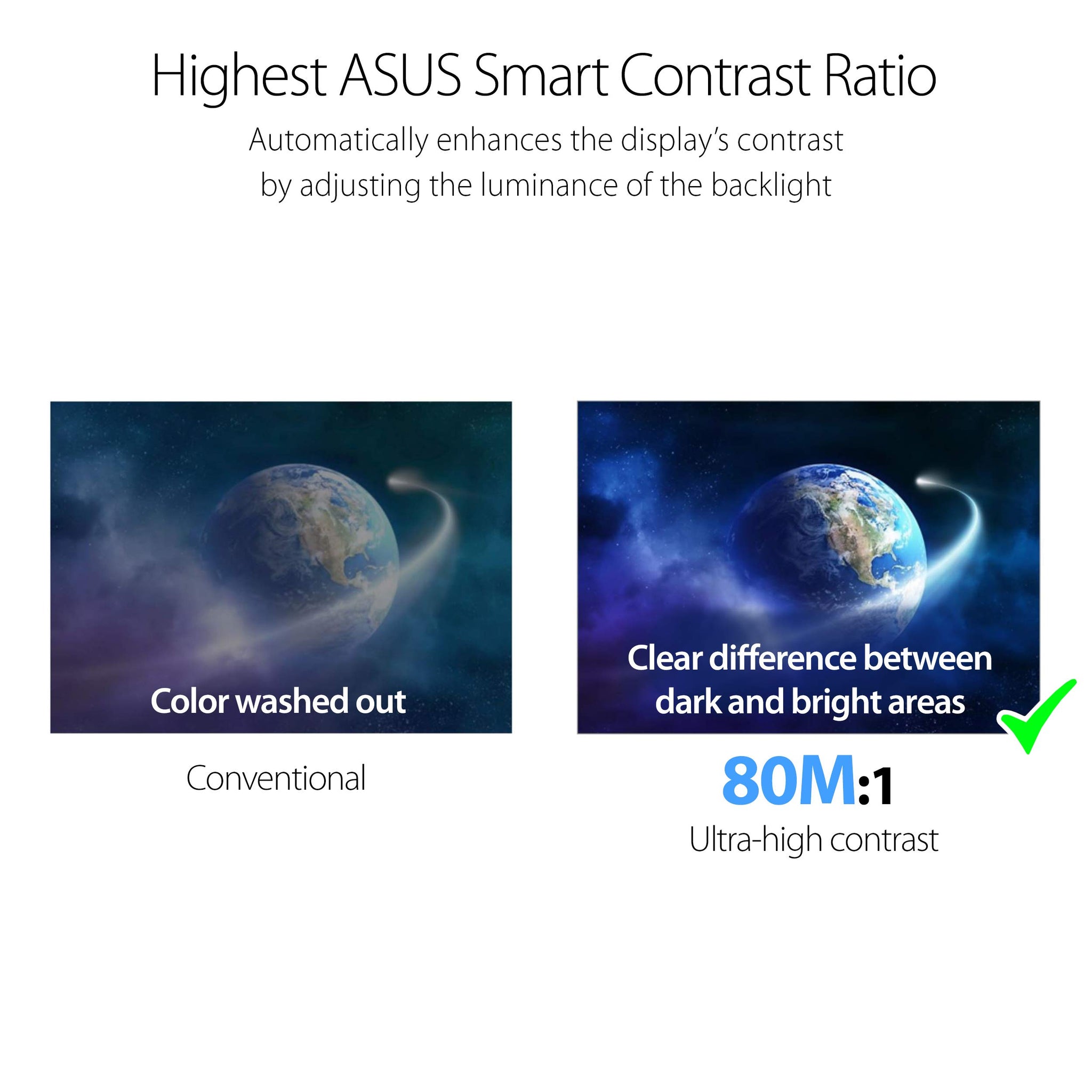 - Asus Eye care technology with flicker-free and Blue light filter to minimize eye fatigue
