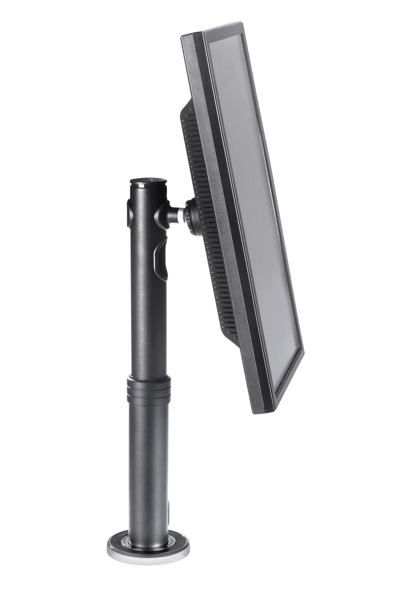 - Easily adjust screens without the need for any tools. Using the built in handgrip the pole can be effortlessly rotated and height adjusted between 12″ and 17.7″ as well as 20 degree display adjustment in any direction