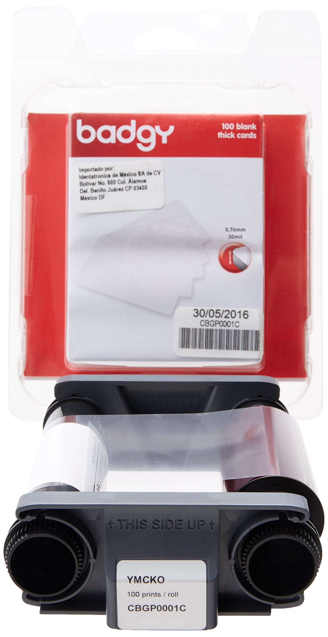 Details: Full Supplies Kit for the Evolis Badgy100 and Badgy200 card printer features everything you need to print 100 ID cards and badges on your Evolis Badge. This supplies kit includes 1 YMCKO color printer ribbon with clear overlay (yield: 100 cards) and 100 blank white PVC cards (thickness: 30 mil). Badge uses one type of four-color YMCKO ribbon with clear overlay, which is included in this kit. Genuine Evolis ribbons are specially designed to guarantee optimum operation of your printer without any risk of damage. The cards included in this supplies kit are 30 mil. thickness - perfect for many types of ID card applications that don't need special coding or ID data, including student ID's, employee ID's, business cards, membership cards, or loyalty cards.