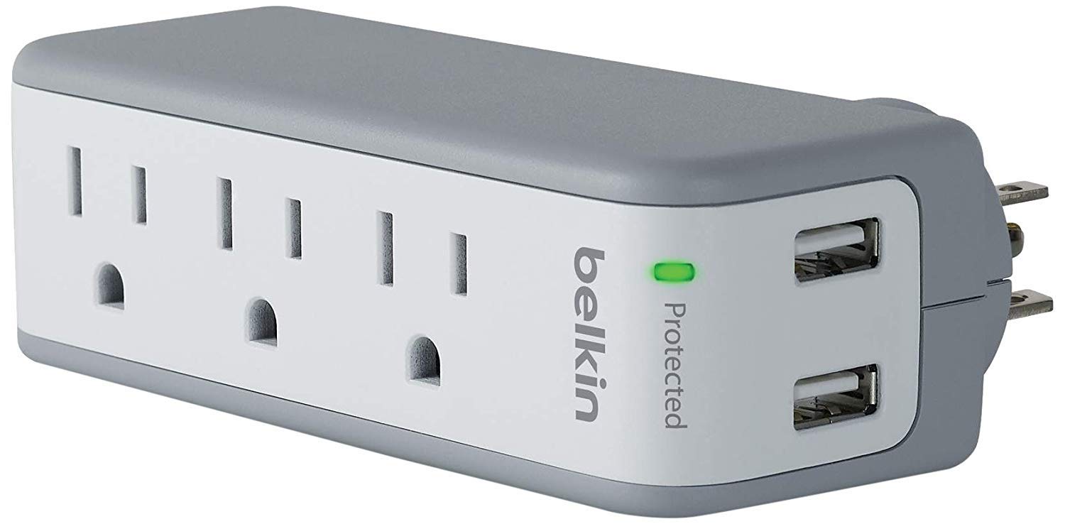 Belkin BZ103050-TVL 3-Outlet Mini Travel Swivel Charger Surge Protector with Dual USB Ports, 1-Amp/5-watt