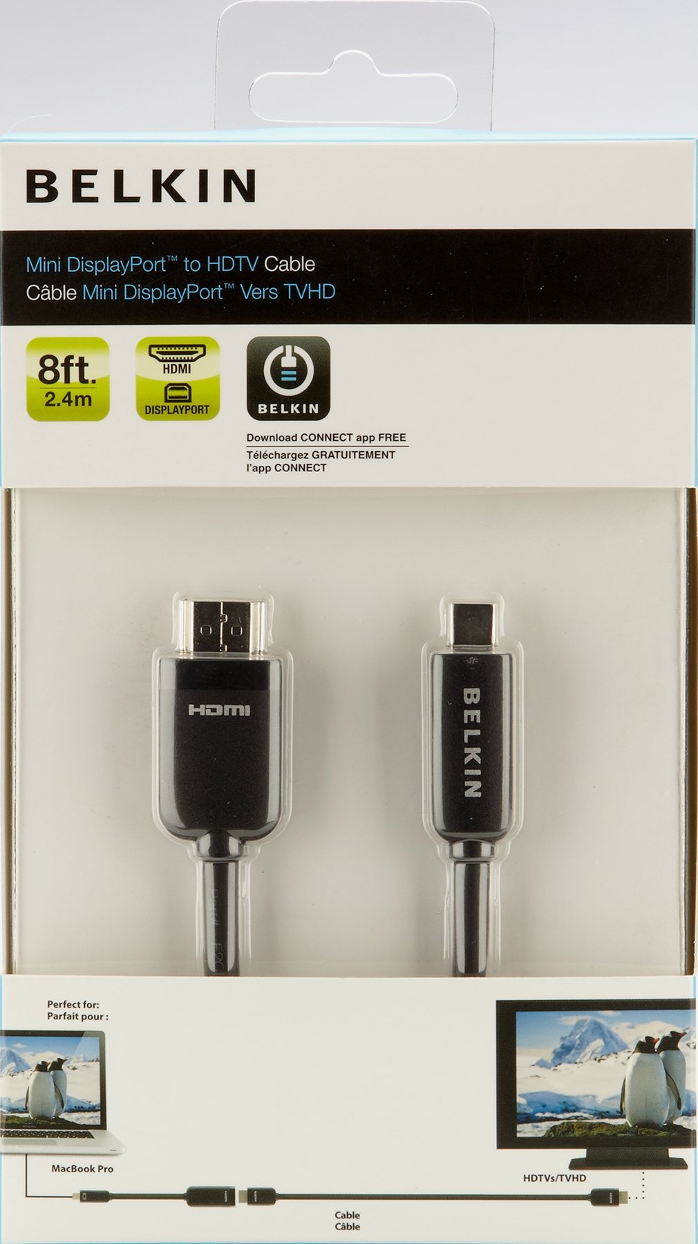 Details: Belkin manufactures the highest quality and largest selection of computer cables in the world. All Belkin cables carry an assurance of excellence obvious both inside and out. From our tough-but-flexible casings to our exclusive wiring configurations, Belkin cable technology guarantees peak performance and optimal data transmission. It's not surprising each also carries a Manufacturer's Lifetime Warranty. / Belkin DisplayPort/HDMI Audio/Video Cable - DisplayPort/HDMI for Audio/Video Device, TV, iMac, MacBook Pro, MacBook - 8 ft - 1 Pack - Mini DisplayPort Digital Audio/Video - HDMI Digital Audio/Video - Black / DisplayPort/HDMI for Audio/Video Device, TV, iMac, MacBook Pro, MacBook - 8 ft - 1 Pack - Mini DisplayPort Digital Audio/Video - HDMI Digital Audio/Video - Black
