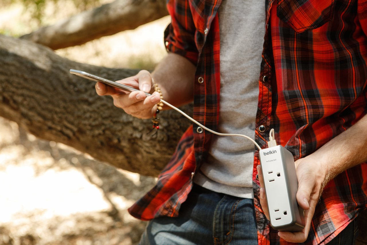 Belkin Travel RockStar Surge Protector with 2 AC Outlets, 1 USB Port and 3000 mAh Battery Pack Charger