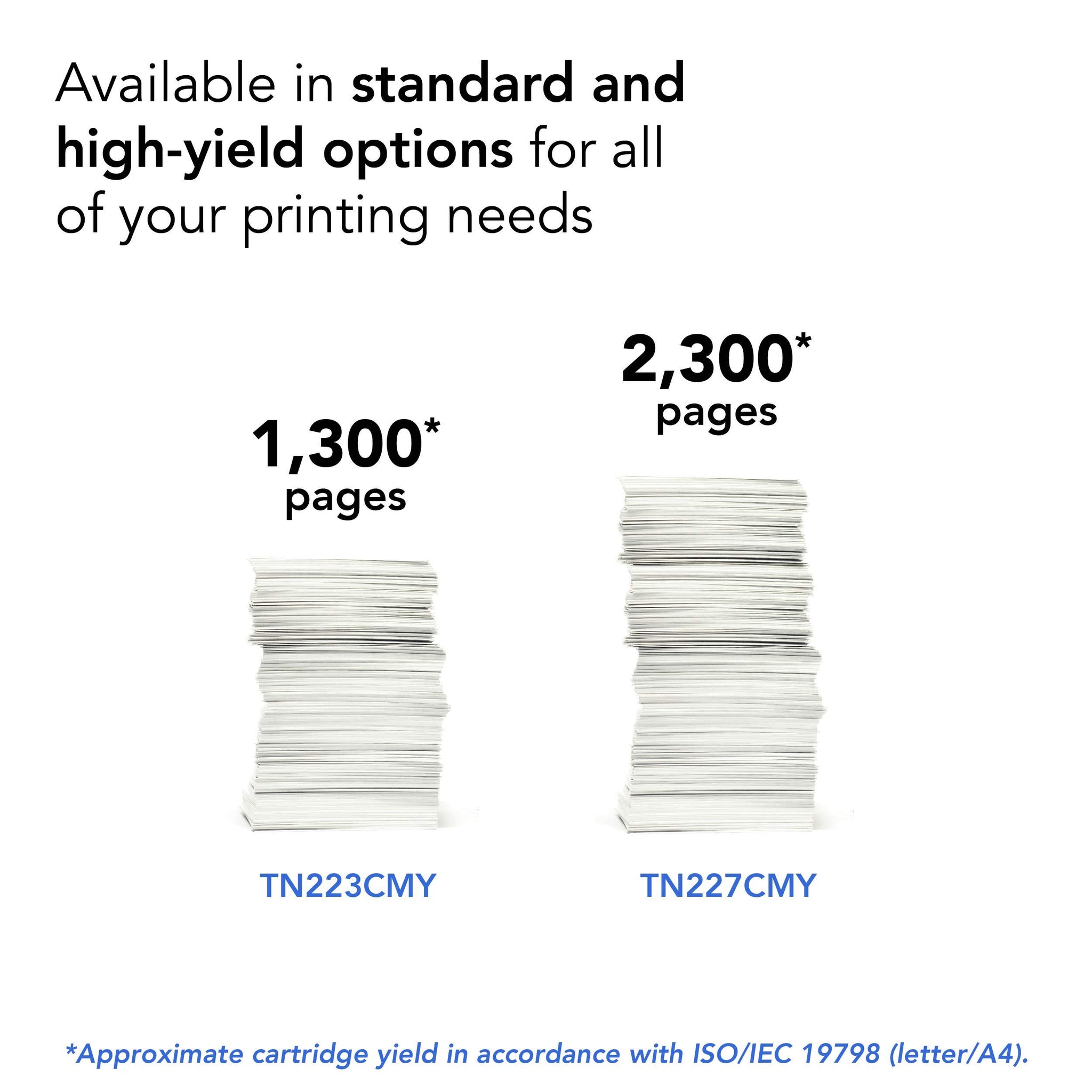 Details: Brother Genuine TN-227Y High Yield Yellow Toner Cartridges deliver consistent, rich, vivid professional color laser print quality with an up to 2,300-page yield.(1) Brother Genuine toner is intelligently engineered to work seamlessly with your Brother printer to produce superior laser quality results that withstand the test of time. Use only Brother Genuine toner cartridges for reliable results. Brother offers an environmentally responsible way for customers to dispose of Brother Genuine cartridges at end of life. Visit manufacturer’s website for more information. Brother Genuine TN227Y High Yield Yellow Toner is for use with Brother printer and all-in-one models: HLL3210CW, HLL3230CDW, HLL3270CDW, HLL3290CDW, MFCL3710CW, MFCL3750CDW and MFCL3770CDW to easily and affordably add color printing to home or small offices. Brother printers offer free online, call, or live chat support for the life of the printer./p (1)Approximate cartridge yield in accordance with ISO/IEC 19798 (letter/A4).(2)Approximate 18,000-page yield each drum unit (may vary by type of use)./pup on activation, Amazon Dash Replenishment eligible Brother printers will seamlessly order Brother Genuine supplies through your Amazon account and ship them directly to your door. /p
