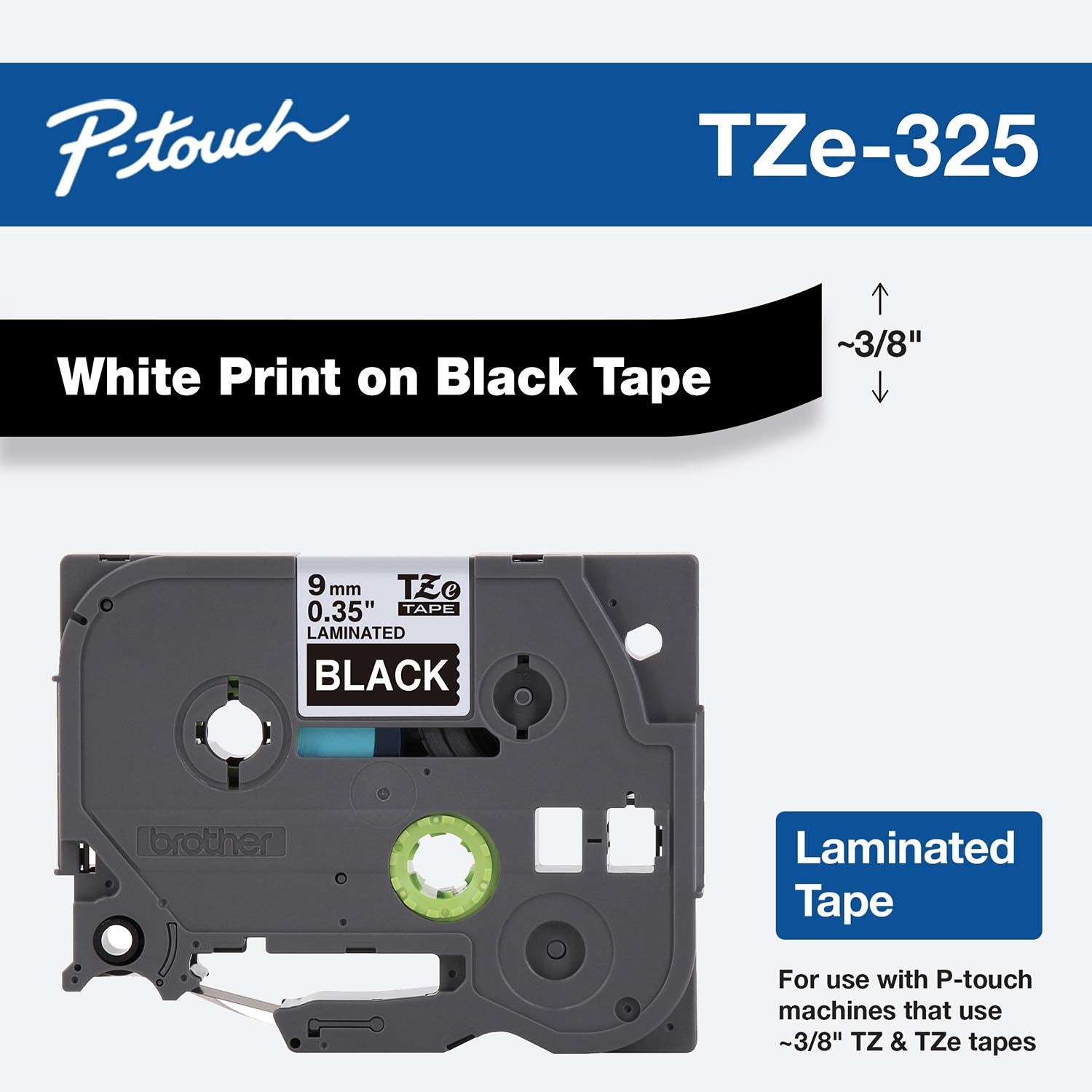 Brother TZE325 Genuine P-Touch Tape (9mm White on Black)